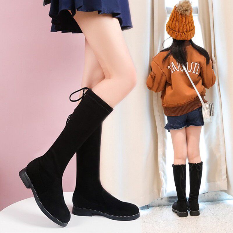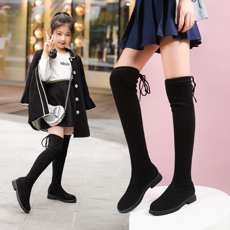 Осенние ботинки, детские высокие сапоги, эластичный наряд маленькой принцессы, подходит для подростков, из натуральной кожи
