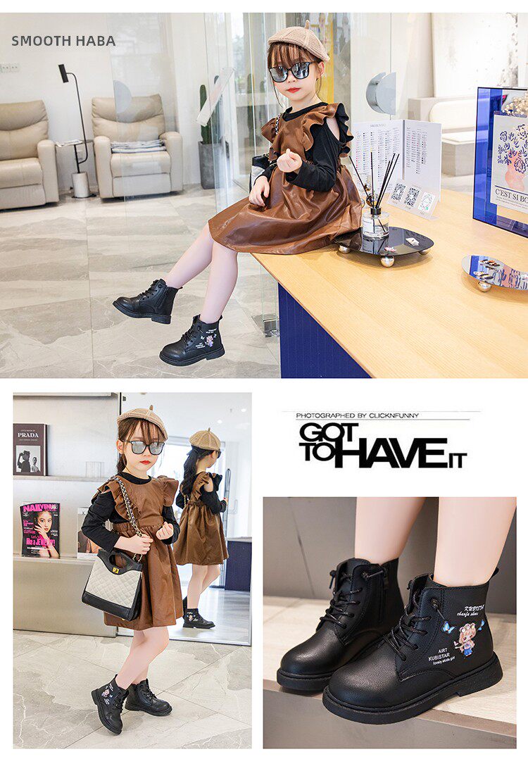 Демисезонные ботинки, детский черный лебедь для принцессы