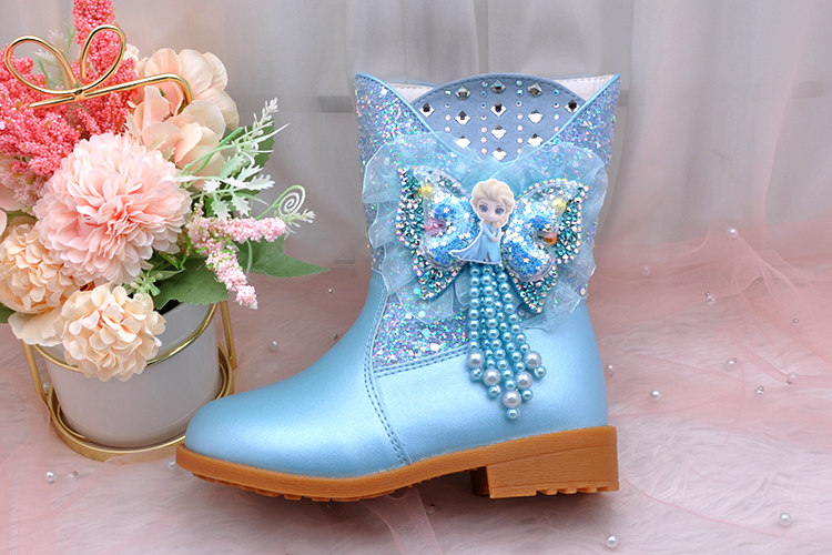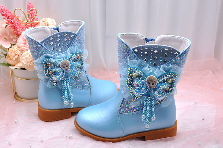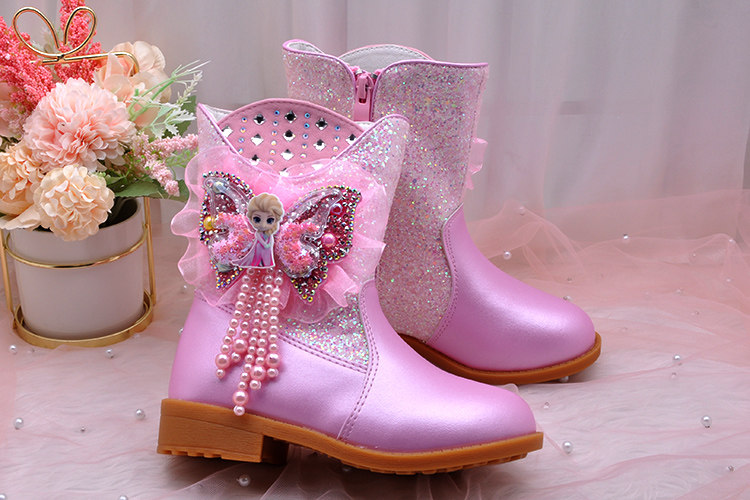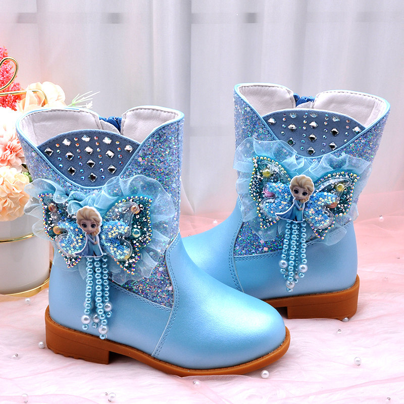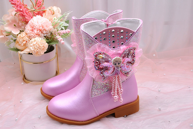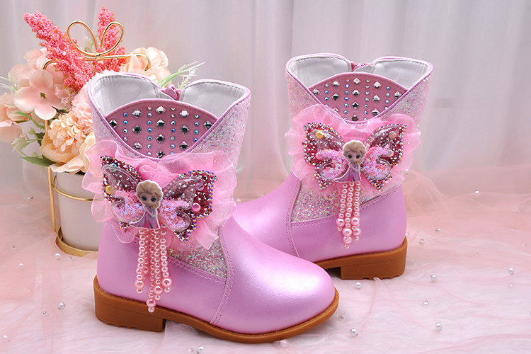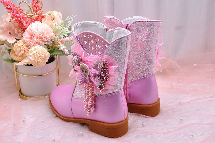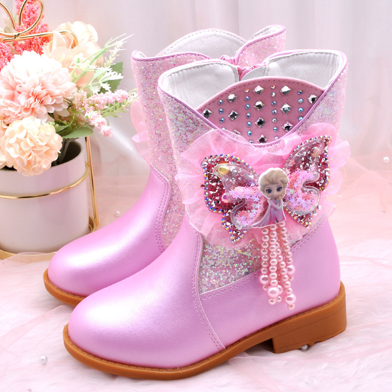 Ботинки, зимние флисовые удерживающие тепло детские сапоги для принцессы, средней длины