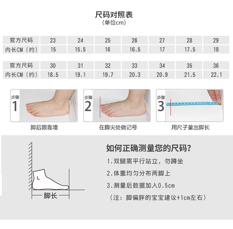 | Размер обуви: | 23 -ярд обуви 15 см в длину, 24 -ярд обуви 15,5 см в длину, 25 -Ярд обуви внутри 16 см., 26 -Яркие туфли внутри 16,5 см, Размер 27, внутренняя длина обуви 17см., 28 -Длина обуви для обуви 17,5 см, Размер 29, внутренняя длина обуви 18см., 30 ярдов обуви по длине 18,5 см, 31 ярд длина обуви 19,1 см., 32, 19.7см, 33 -ярд обуви внутри 20,3 см, 34 -Длина обуви для обуви 20,9 см., 35 -Длина обуви для обуви 21,5 см |