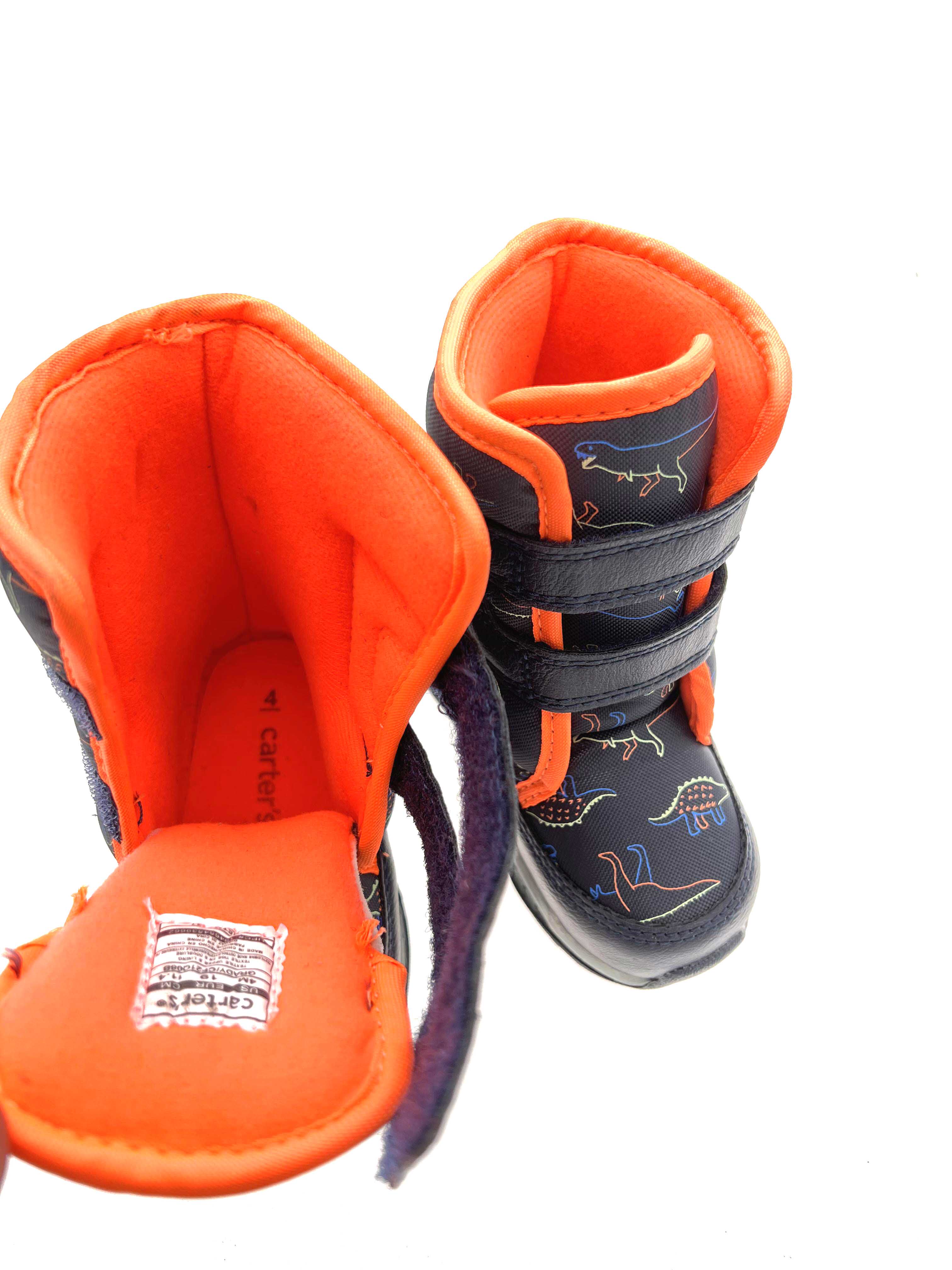 В 2021 году детские ботинки CARTER'S будут экспортироваться в США. Носок из полиуретана, верх из ткани, подкладка из тонкой бархатной хлопчатобумажной трубки, межподошва из тонкого бархата с губкой, а нижняя часть из противоскользящей подошвы из TPR.Высота трубки составляет около 10 см, она закрывается волшебной пряжкой, что позволяет легко носить ее.На подошве есть свет, который мигает при ходьбе.