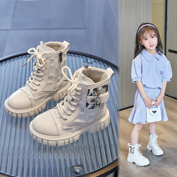 Демисезонные детские высокие тканевые модные короткие сапоги, в корейском стиле, средней длины, подходит для подростков