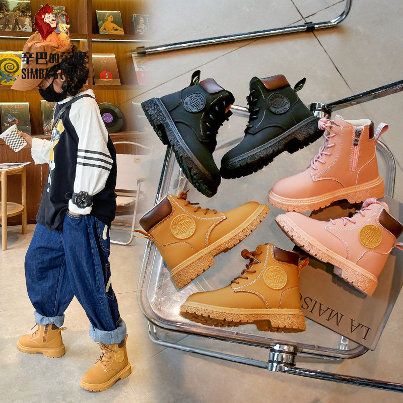Martens, зимняя флисовая обувь в английском стиле для мальчиков, детские ботинки, короткие сапоги, коллекция 2022, в британском стиле