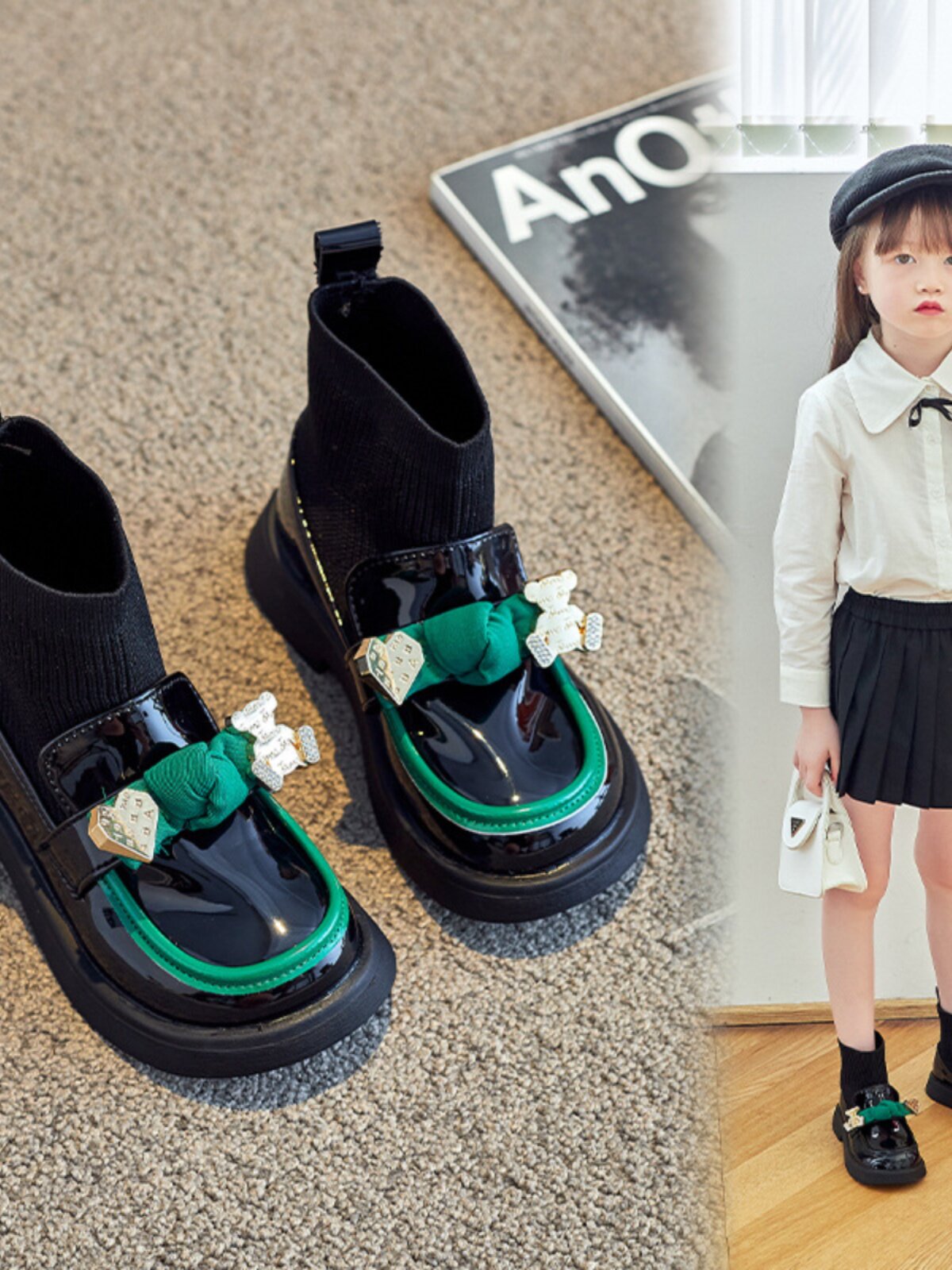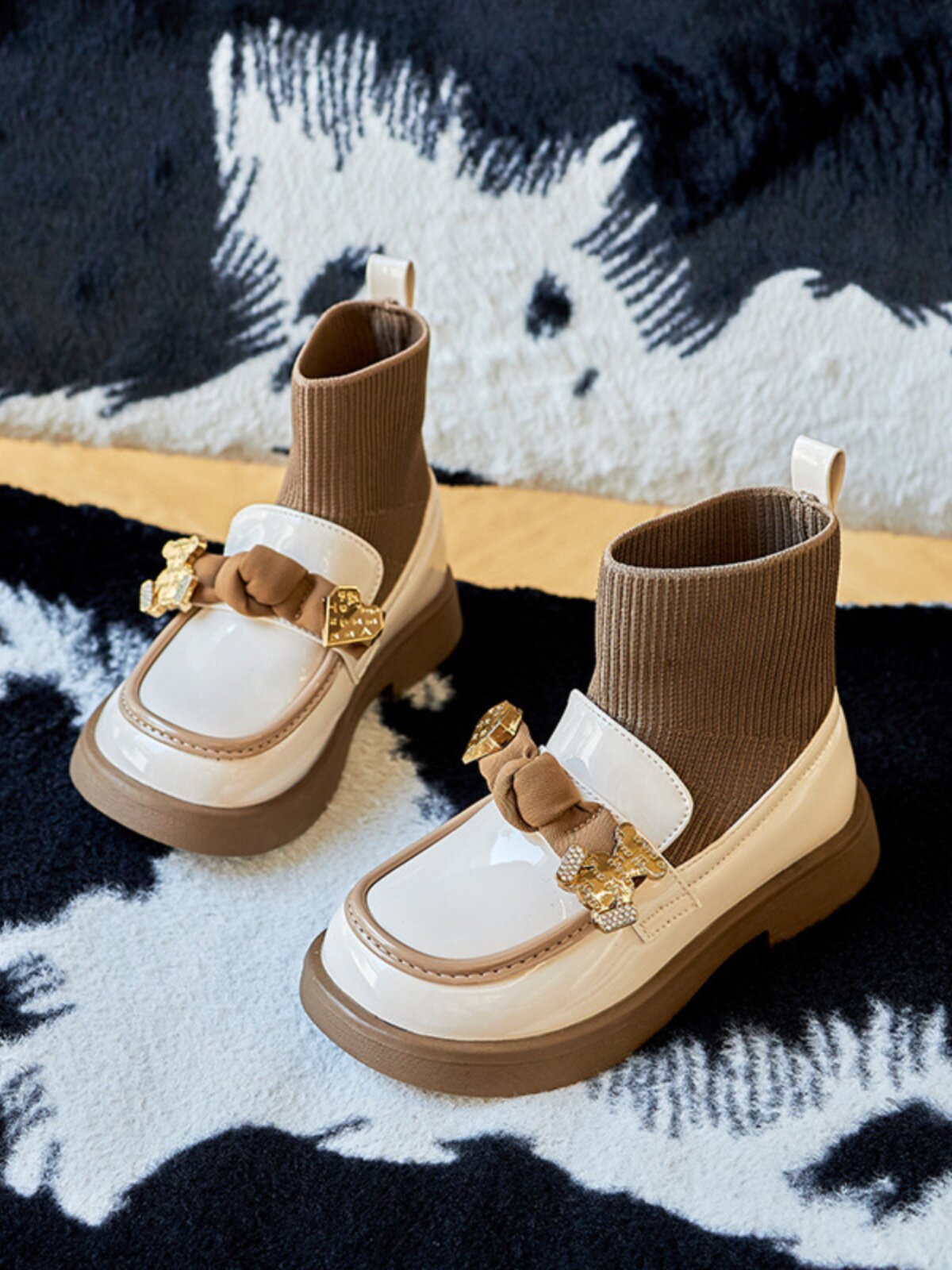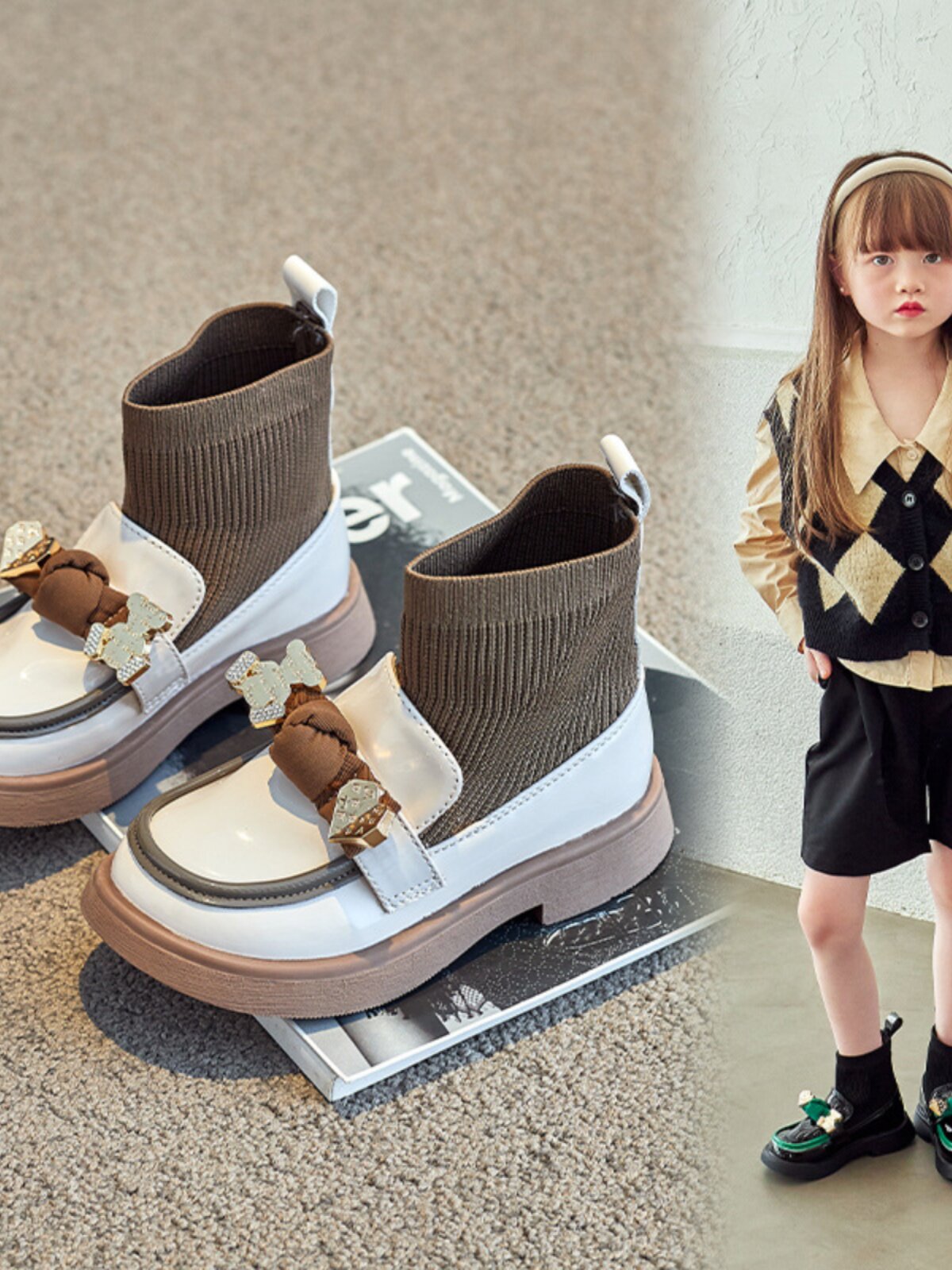 Демисезонные трикотажные детские трендовые короткие сапоги с бантиком для кожаной обуви, модель весна/осень 2025 года, тренд сезона