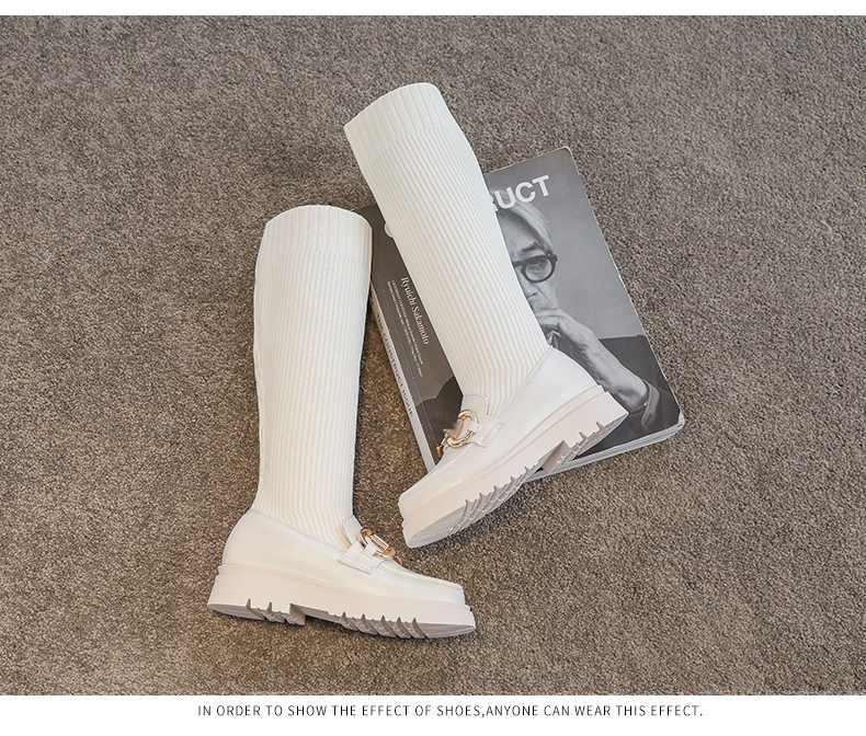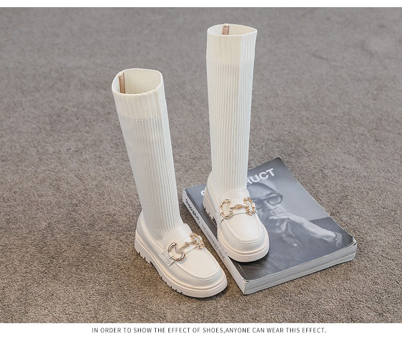 Демисезонные белые высокие сапоги, эластичные ботинки для принцессы, обувь, подходит для подростков, в западном стиле
