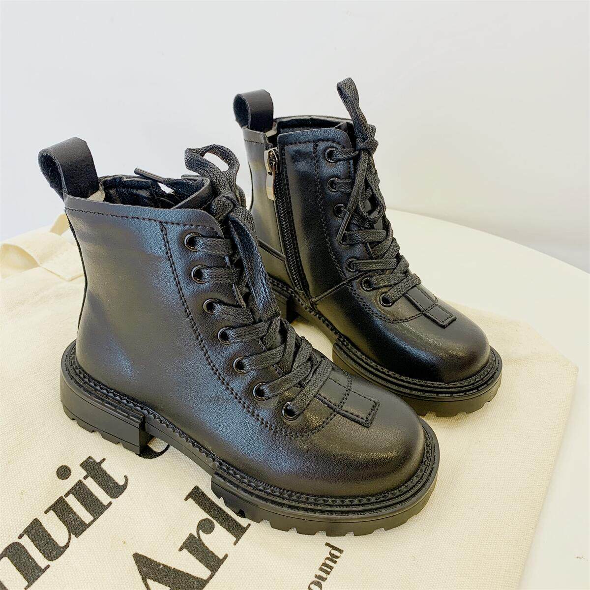 Martens, демисезонные детские короткие сапоги для мальчиков, ботинки, из натуральной кожи, подходит для подростков, мягкая подошва