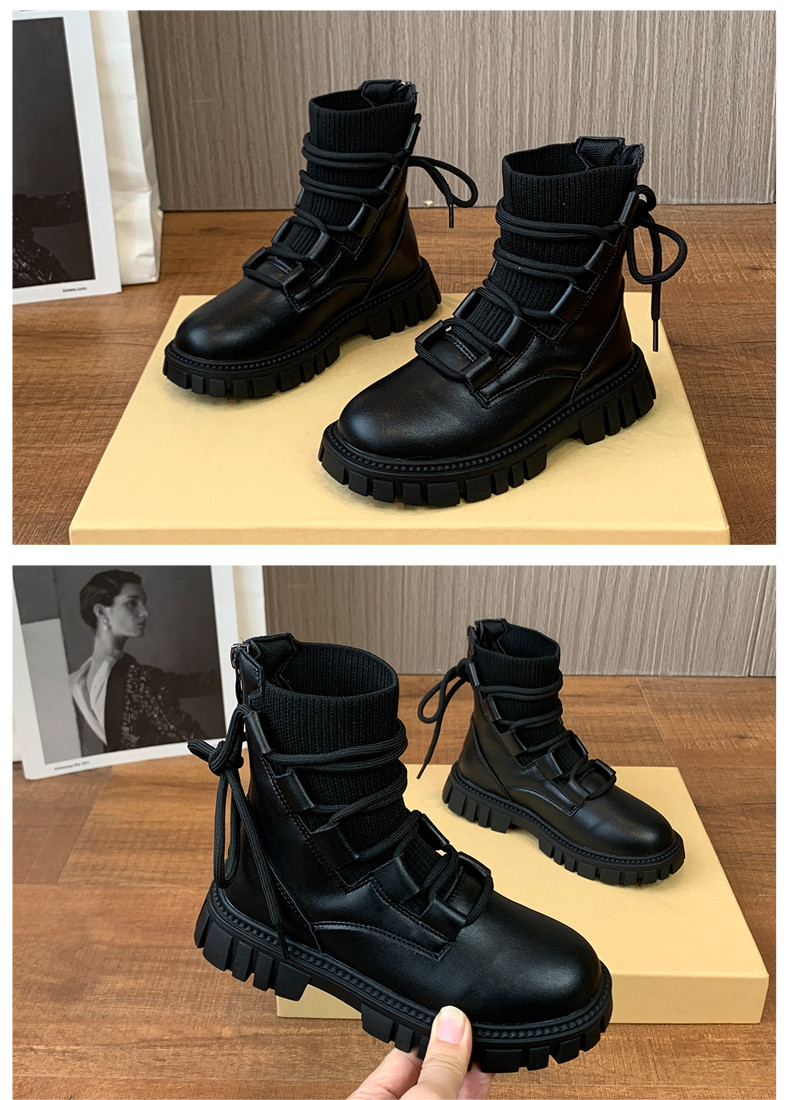 Martens, демисезонные трикотажные модные корейские короткие сапоги для принцессы, популярно в интернете, мягкая подошва