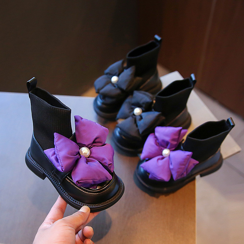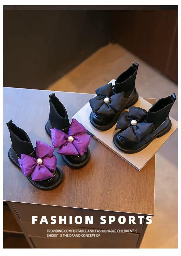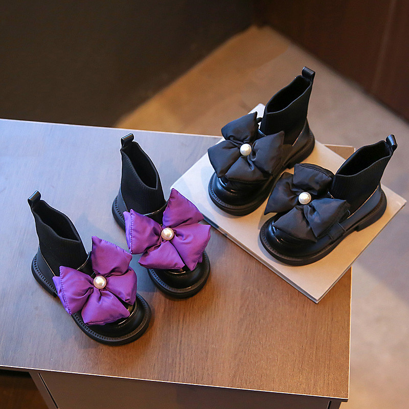 Осенние ботинки, осенний комплект, сапоги с бантиком для принцессы, в корейском стиле