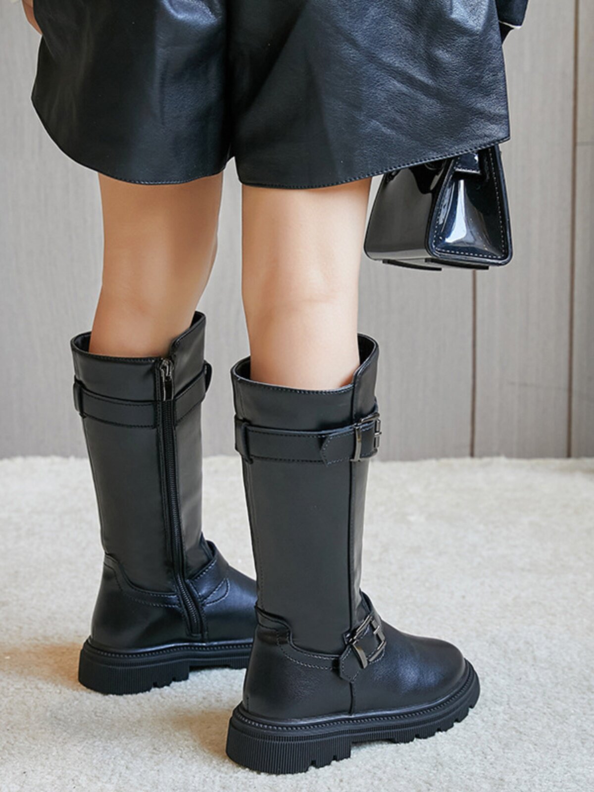Демисезонные корейские модные высокие сапоги для черной кожи, лебедь для кожаной обуви, средней длины