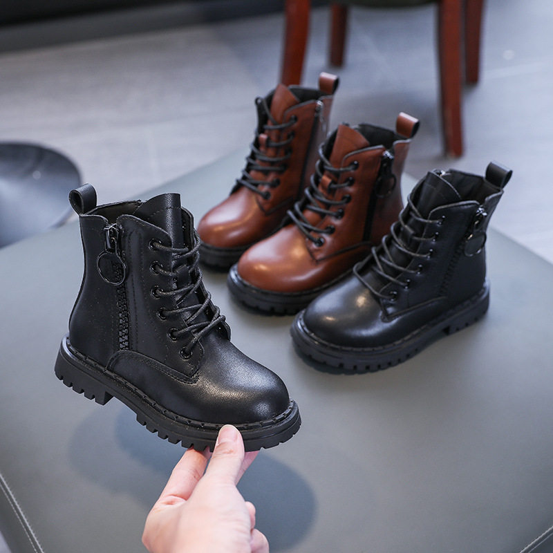 Martens, черные модные короткие сапоги для мальчиков, универсальные ботинки, из натуральной кожи, 2022, осенние, тренд сезона, в корейском стиле