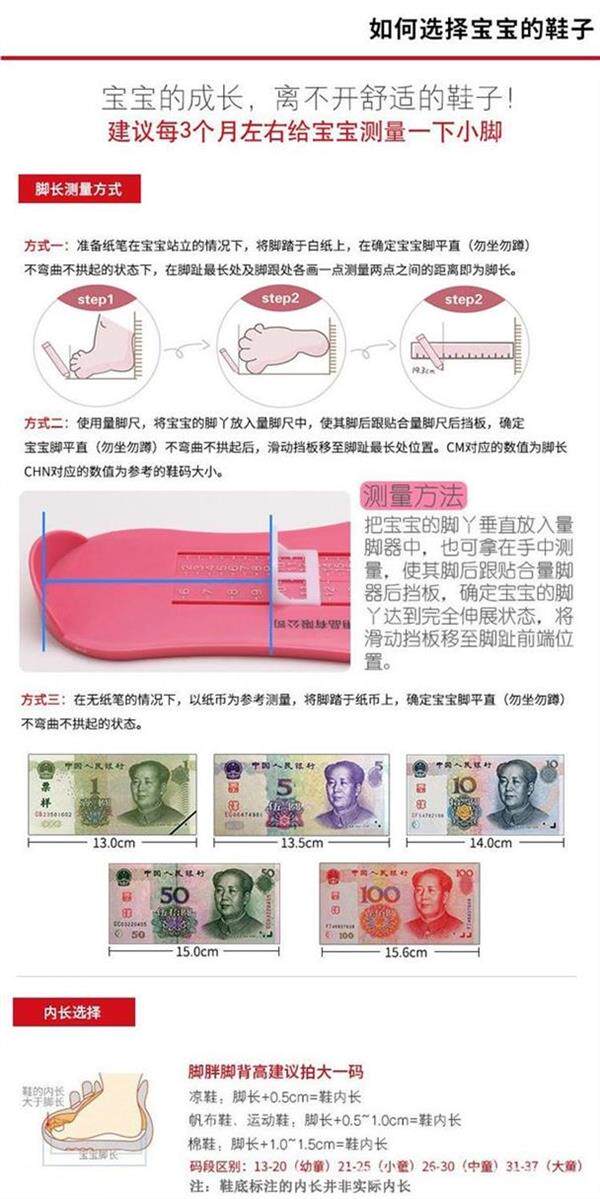| Размер обуви: | 24 15CM, 25 15.5CM, 26 16.0CM, 27 16.5CM, 28 17.3CM, 29 18CM, 30 18.6CM, 31 18.9CM, 32 19.6CM, 33 20.3CM |