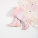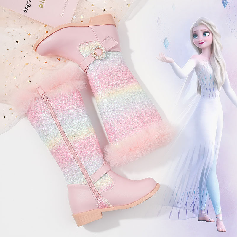 Утепленные высокие сапоги, радужные блестки для ногтей для принцессы