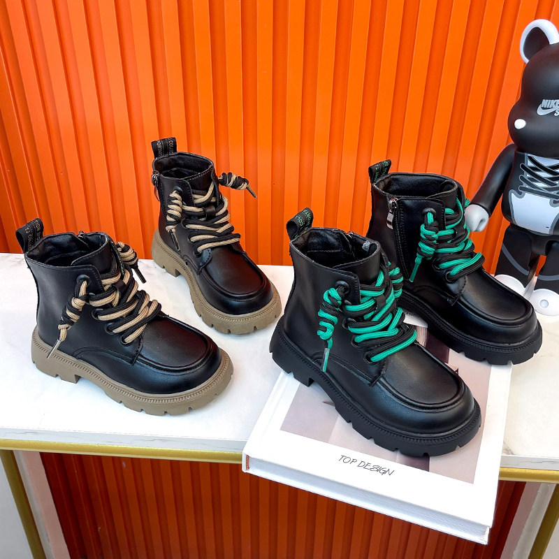 Martens, демисезонные детские нескользящие короткие сапоги для кожаной обуви в английском стиле для мальчиков, коллекция 2022, в британском стиле, мягкая подошва