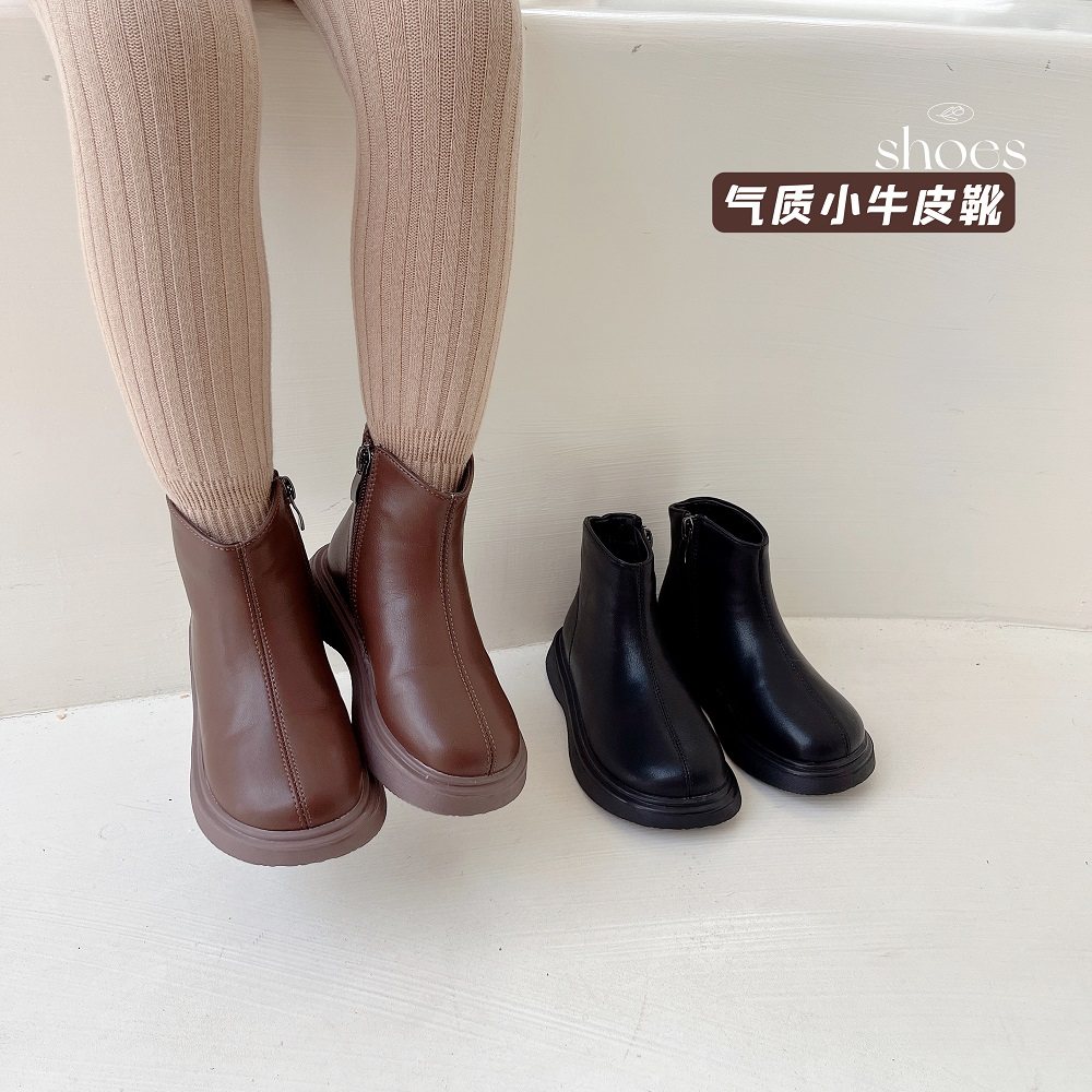 Демисезонные универсальные кожаные сапоги с молнией для девочек, городской стиль