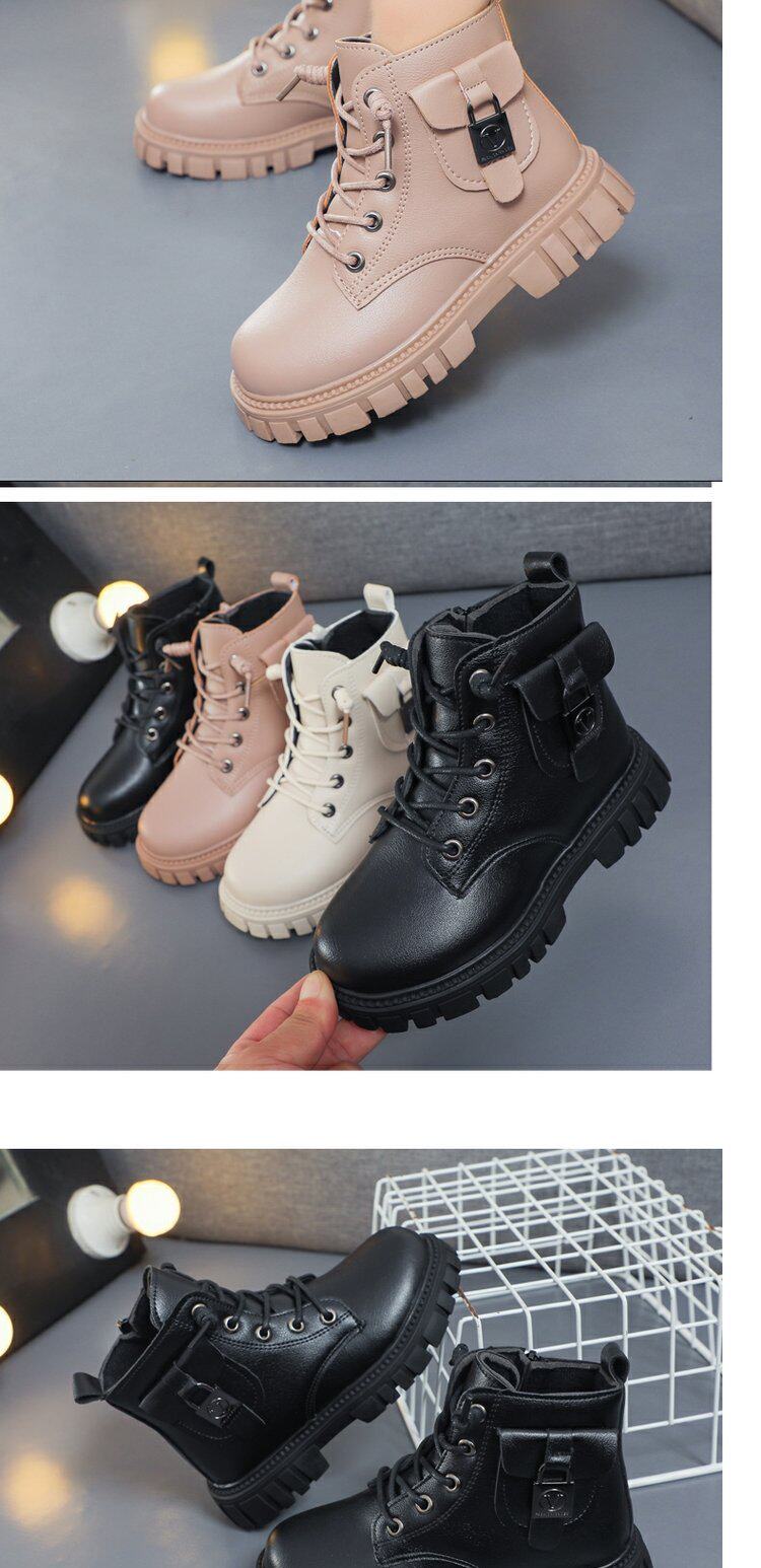 Martens, модные флисовые удерживающие тепло короткие сапоги, зимние универсальные детские ботинки для мальчиков, в корейском стиле