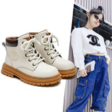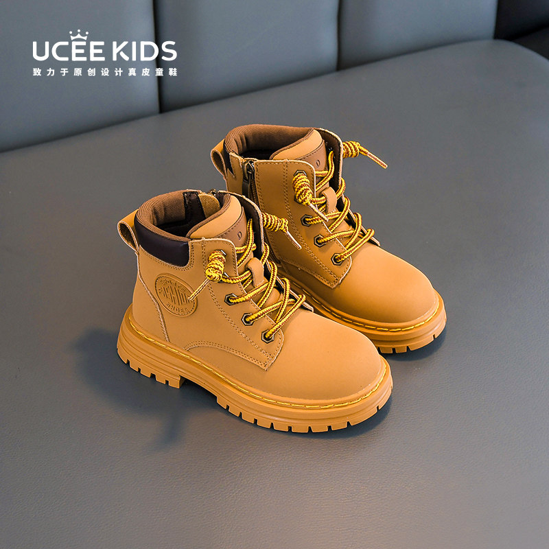 Martens, демисезонные флисовые зимние детские короткие сапоги для мальчиков, ботинки, из натуральной кожи