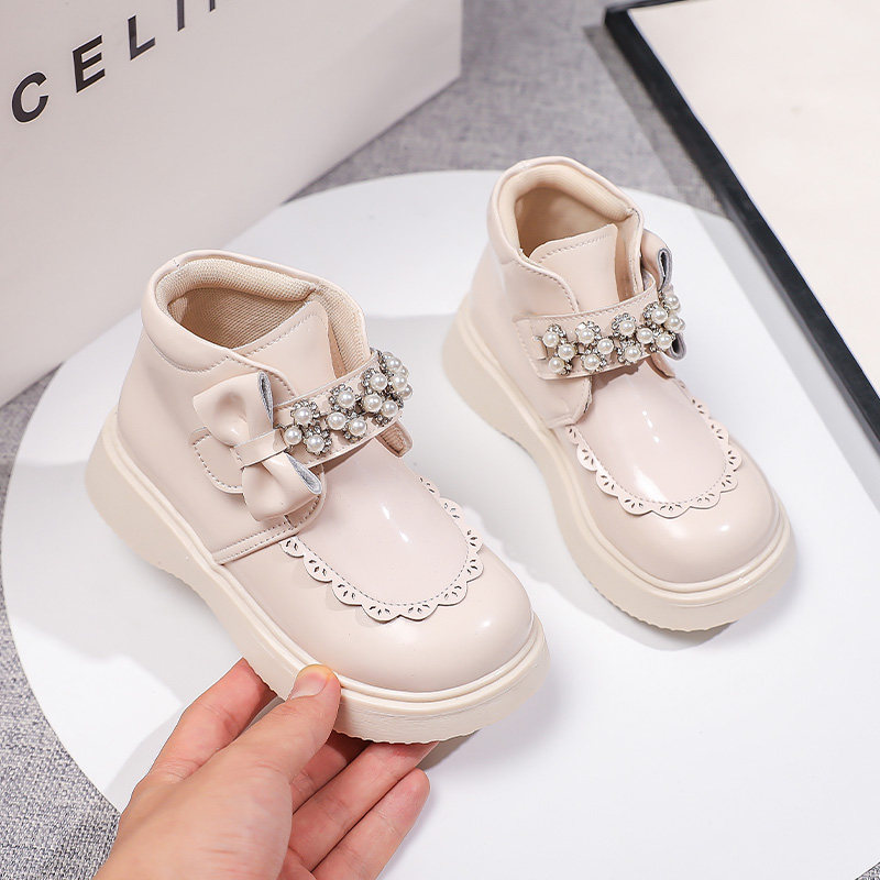 Демисезонные ботинки, детские флисовые короткие сапоги для принцессы, из натуральной кожи, подходит для подростков