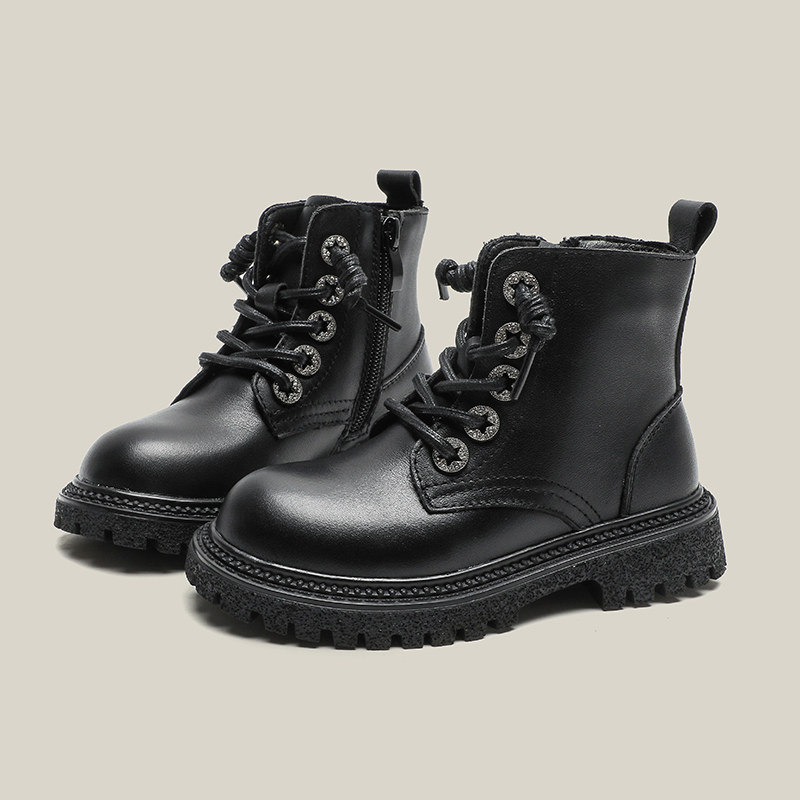Martens, ботинки, детские демисезонные черные короткие сапоги для принцессы, коллекция 2023, осенние, в западном стиле, из натуральной кожи