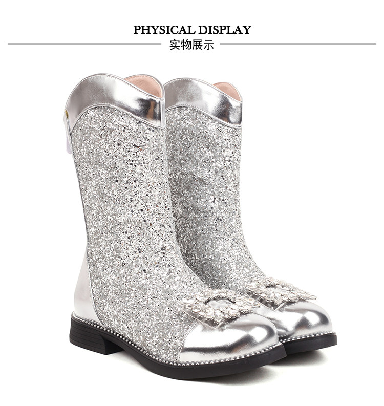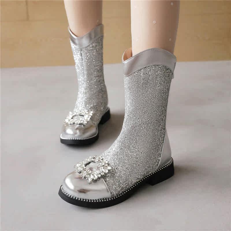 Martens, модные детские сапоги, серебряные блестки для ногтей для принцессы, детский подиумный костюм, для подиума, детское серебро, в западном стиле