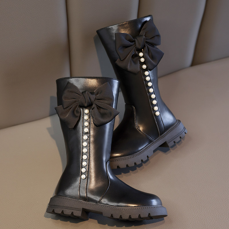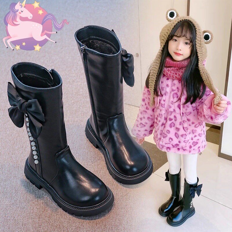 Детские высокие сапоги, демисезонные зимние флисовые ботинки, коллекция 2023, в западном стиле