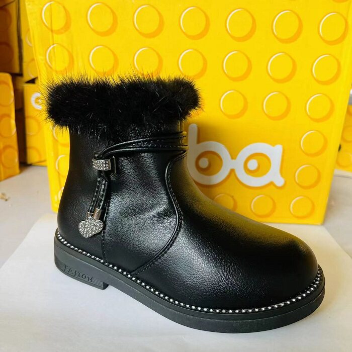 Детские ботинки и туфли Daba, новинка 2024 года, зимняя детская обувь в корейском стиле на низком каблуке, с плоской подошвой, с закругленным носком и боковой молнией, 21D1228E