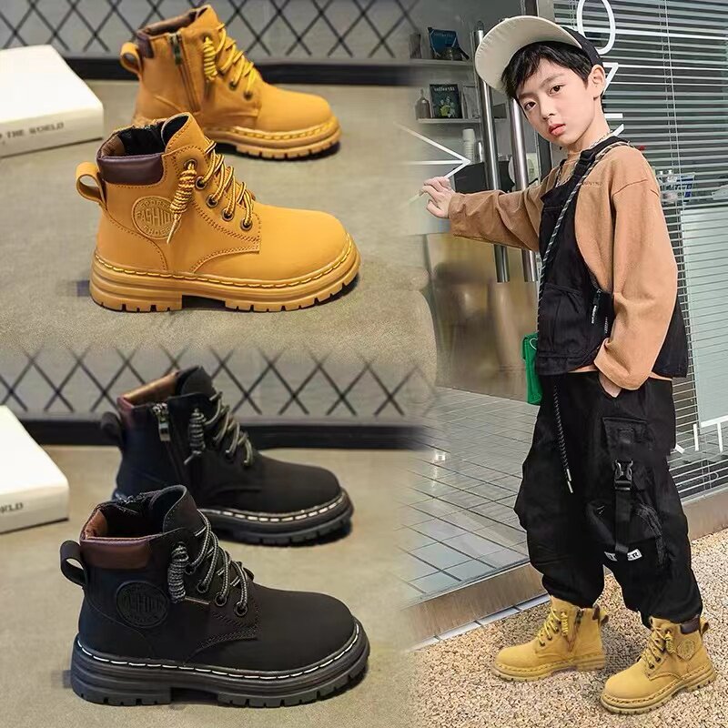 Martens, детская обувь для мальчиков, зимние флисовые короткие сапоги в английском стиле, осенняя, тренд сезона, в британском стиле