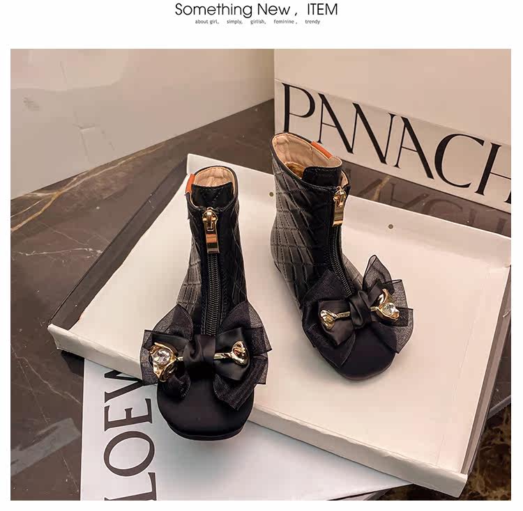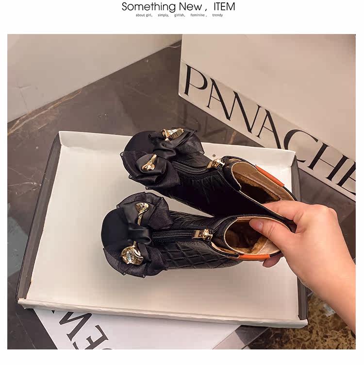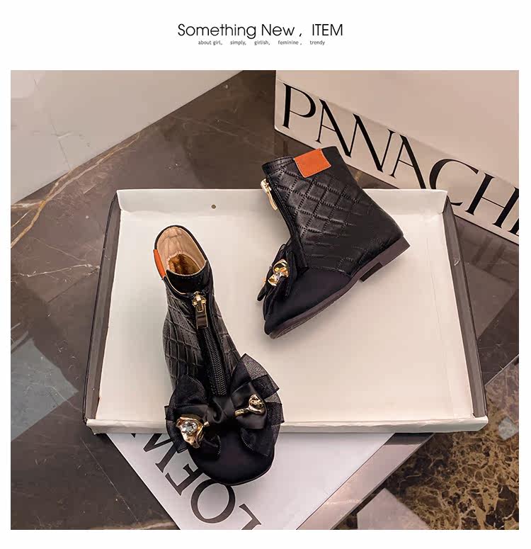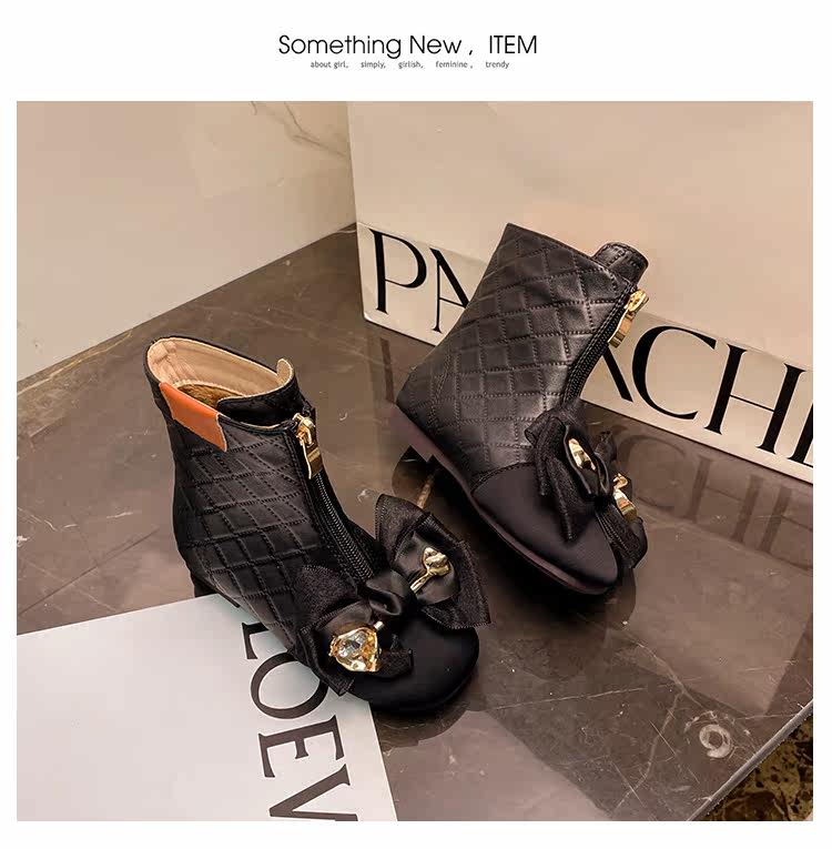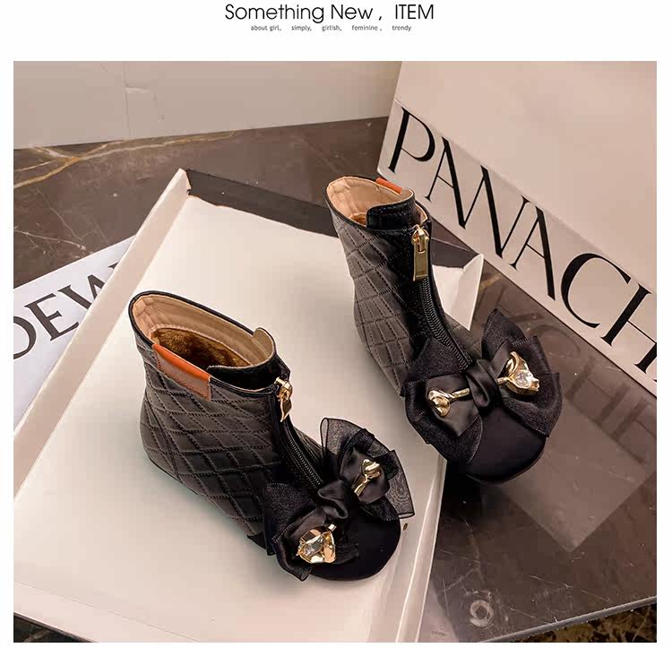 Martens, детские демисезонные черные модные флисовые короткие сапоги для принцессы