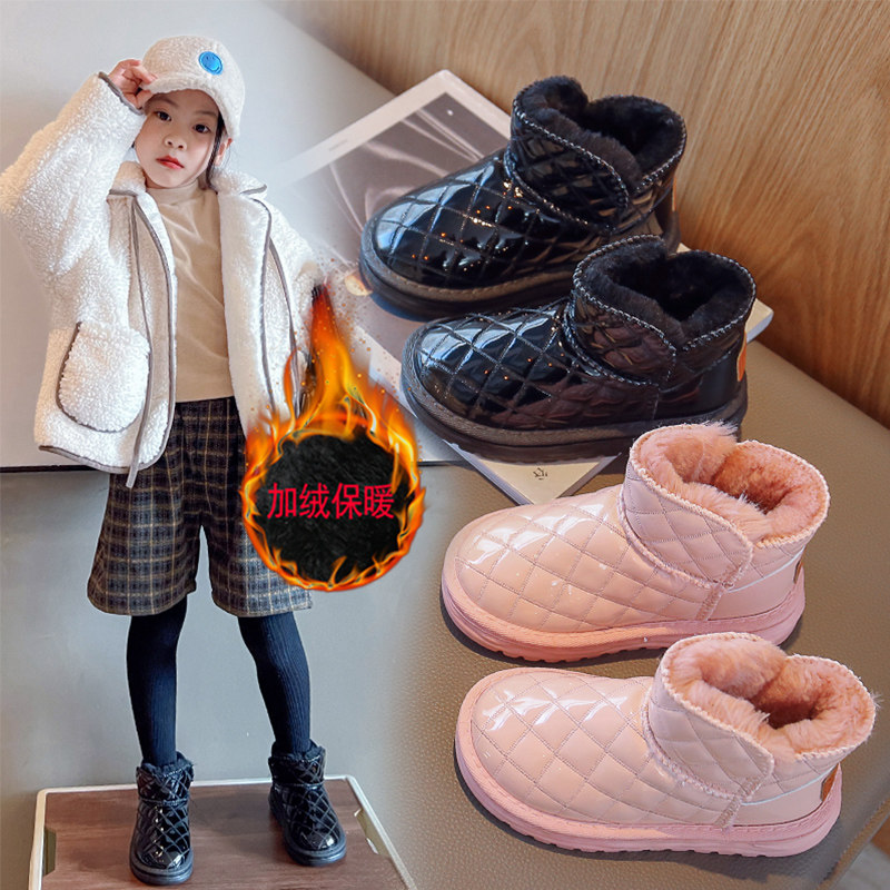 Снегоступы для девочек, хлопковая обувь интернет-знаменитостей, новинка 2025 года, зимние большие хлопковые туфли, водонепроницаемая, нескользящая, теплая и утолщенная детская обувь на мягкой подошве.