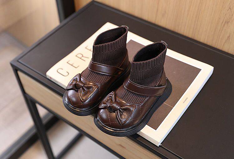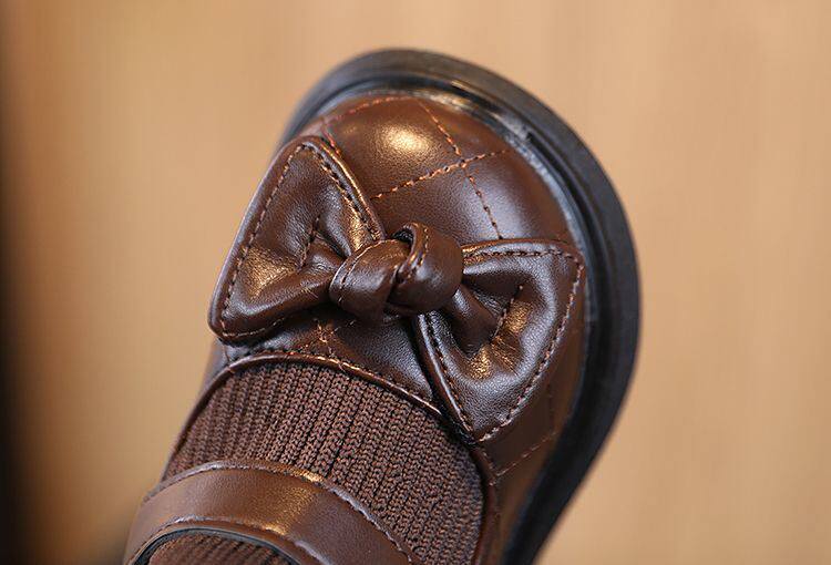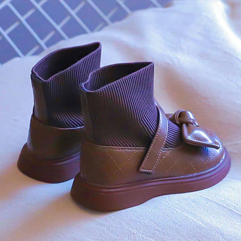 Ботинки с бантиком для принцессы, флисовые удерживающие тепло детские короткие сапоги для кожаной обуви