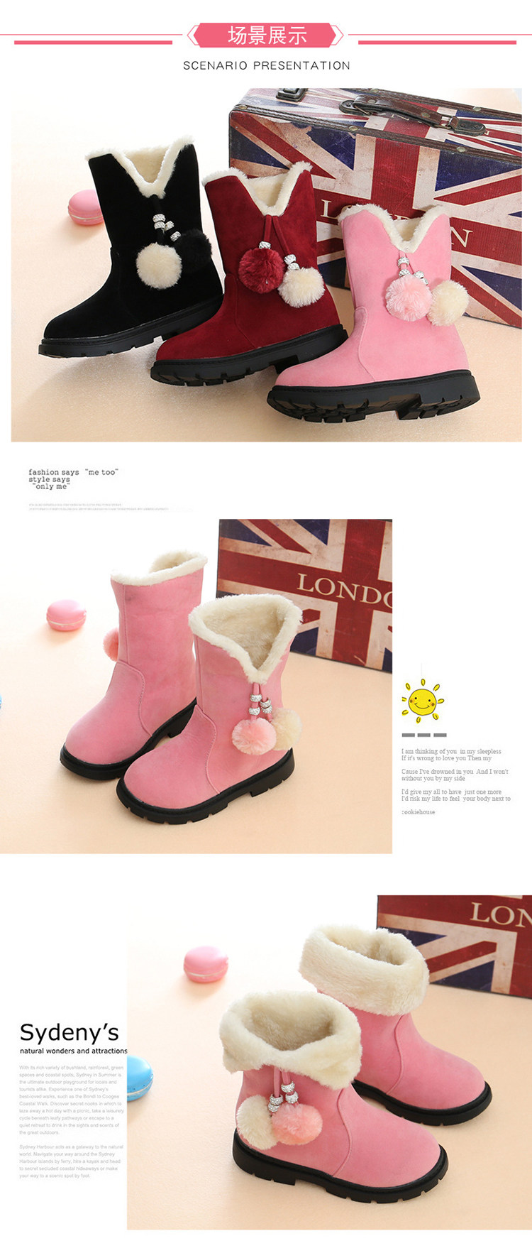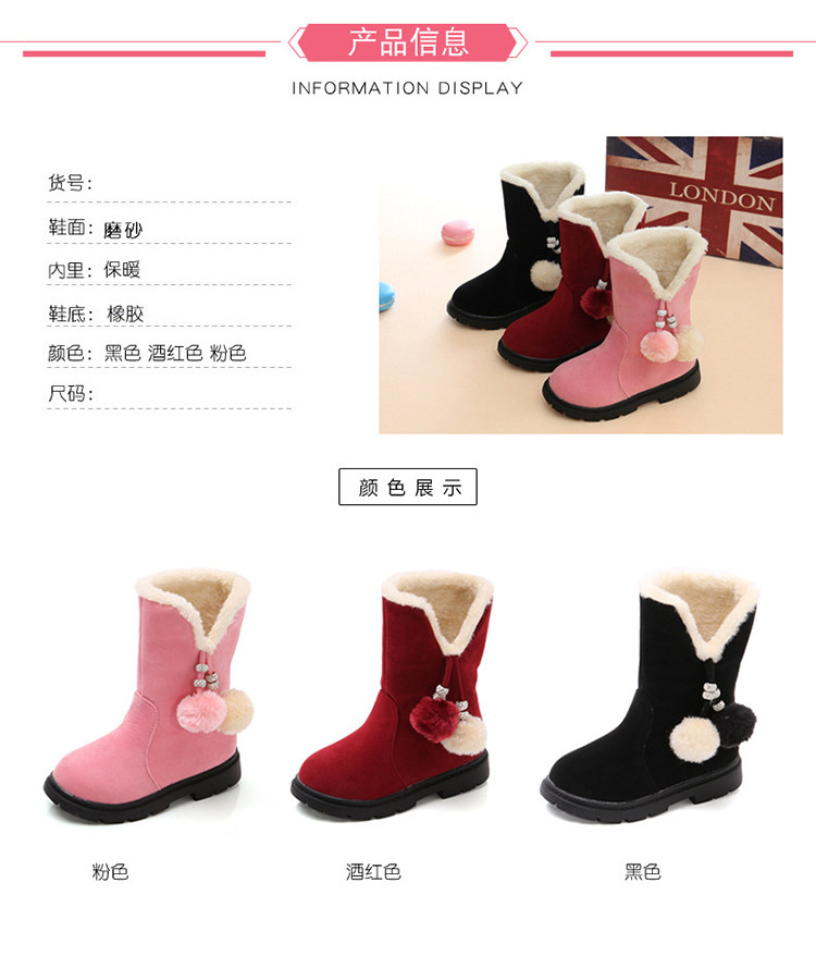 Ботинки, зимняя флисовая обувь, наряд маленькой принцессы, демисезонные детские зимние сапоги, коллекция 2023, увеличенная толщина, средней длины