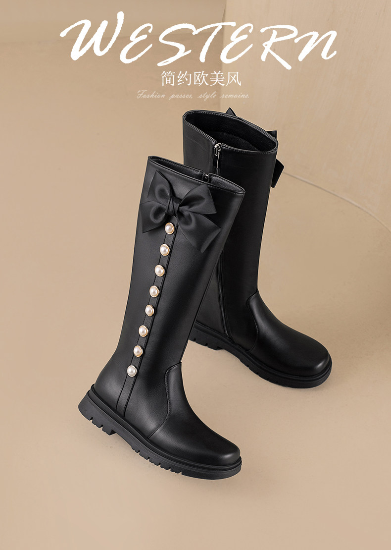 Детские ботинки, зимние флисовые высокие сапоги, обувь для принцессы, в западном стиле