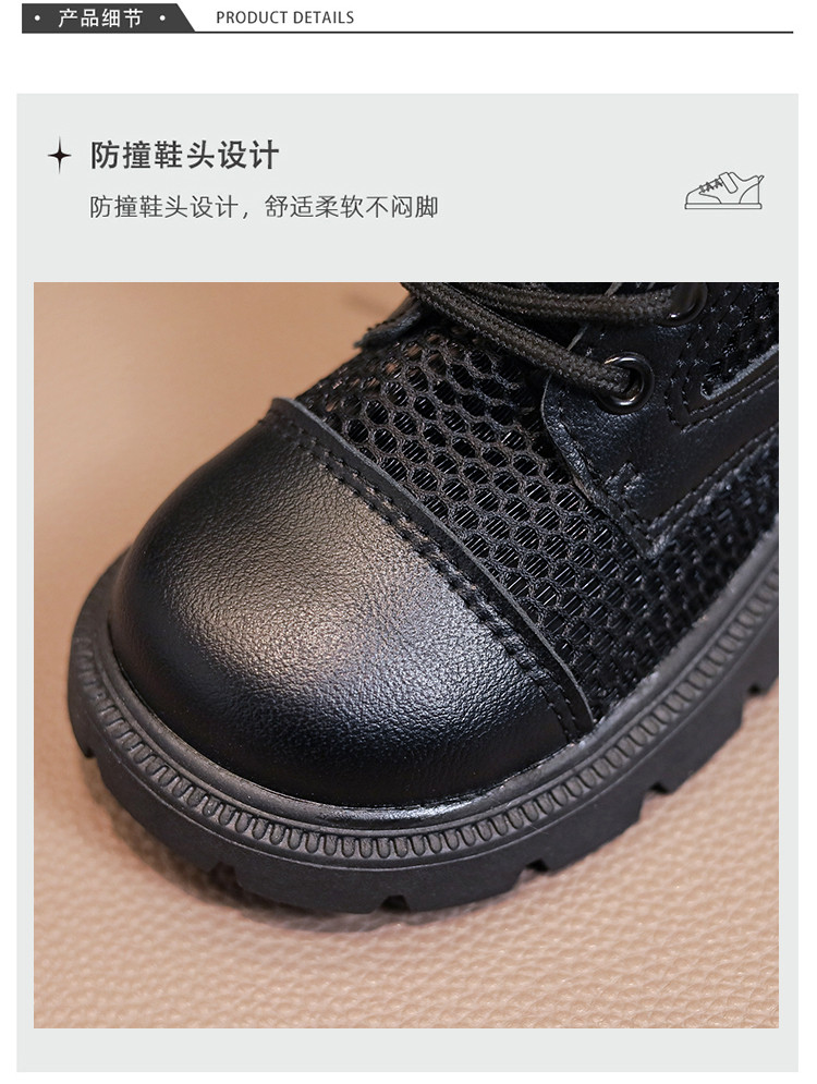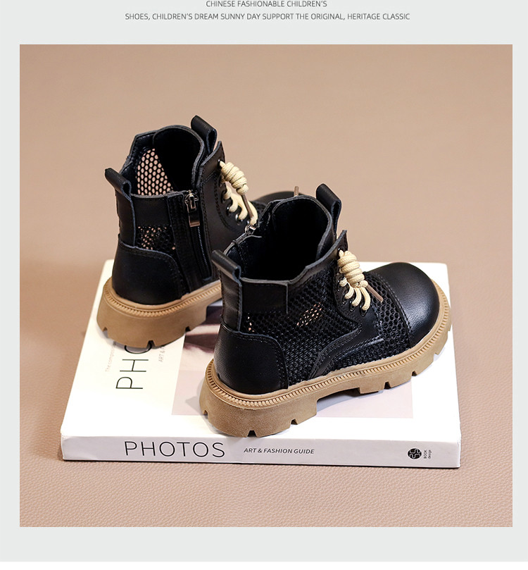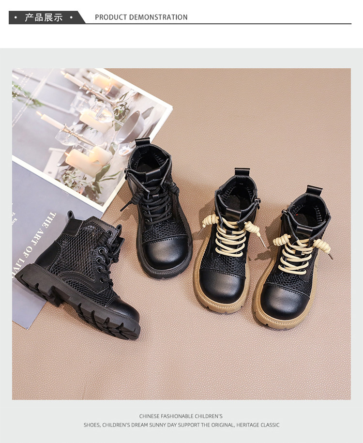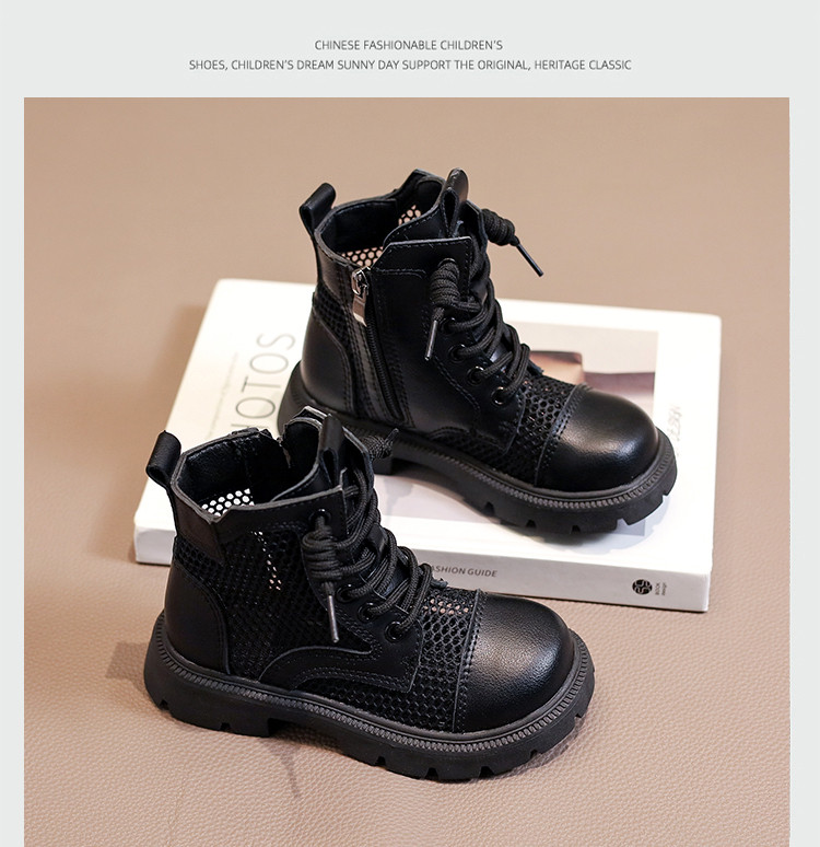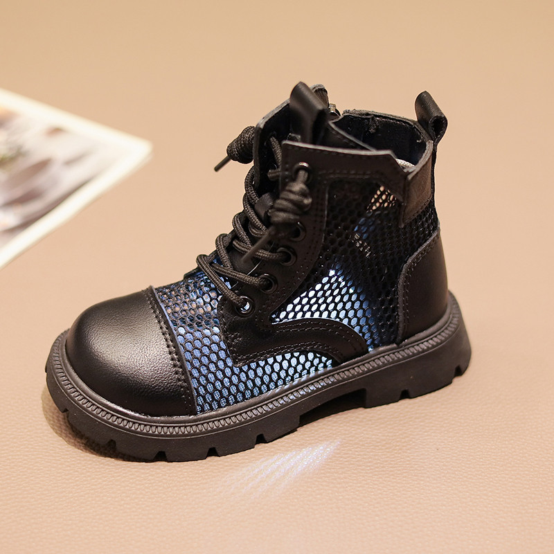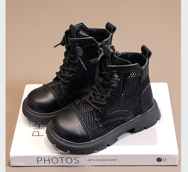 Martens, летние дышащие тонкие сетчатые черные детские сапоги