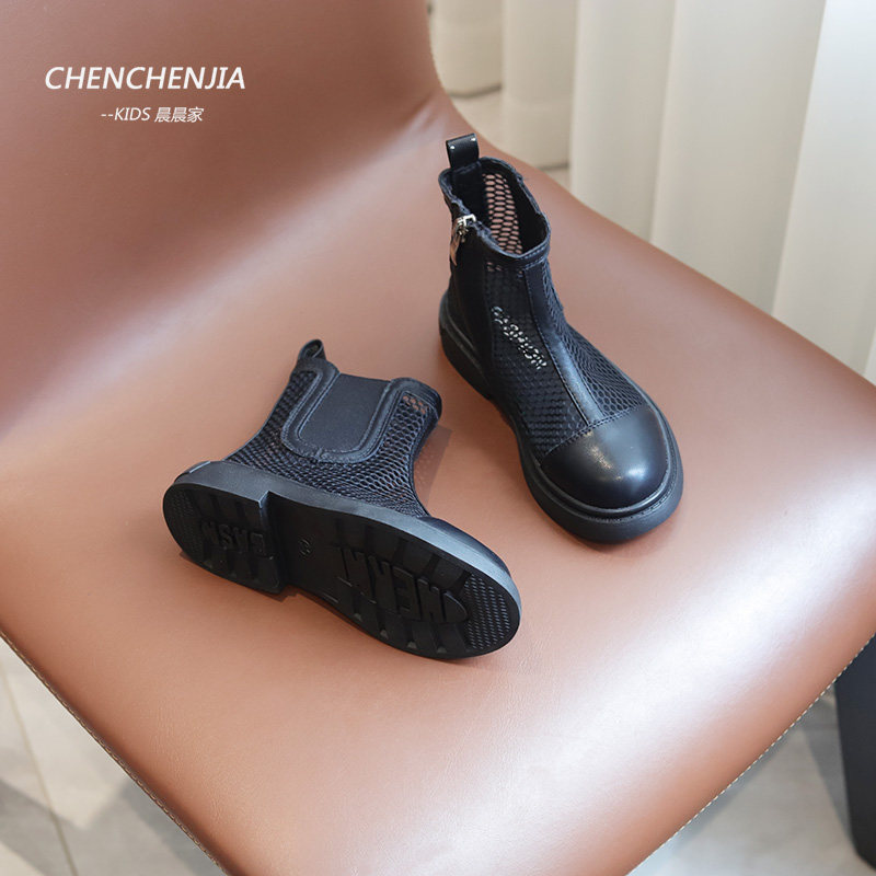 Martens, детская летняя обувь, черные дышащие короткие сапоги, ботинки, из натуральной кожи, подходит для подростков