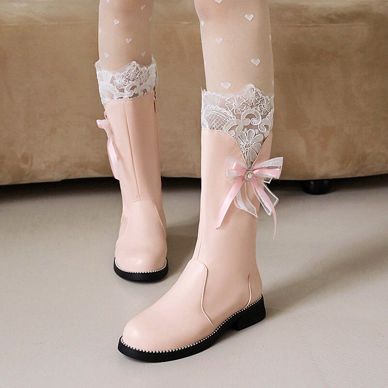 Martens, демисезонные ботинки, детские флисовые высокие сапоги для принцессы, средней длины, подходит для подростков