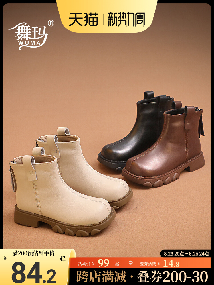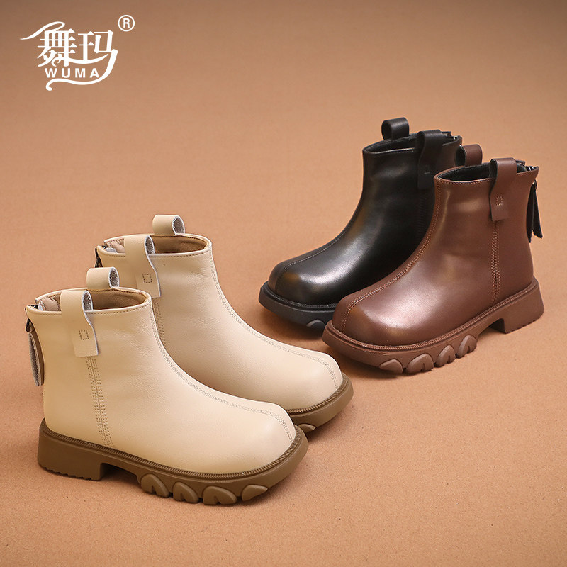 Martens, демисезонные модные короткие сапоги для девочек, флисовые детские ботинки, из натуральной кожи, коллекция 2023