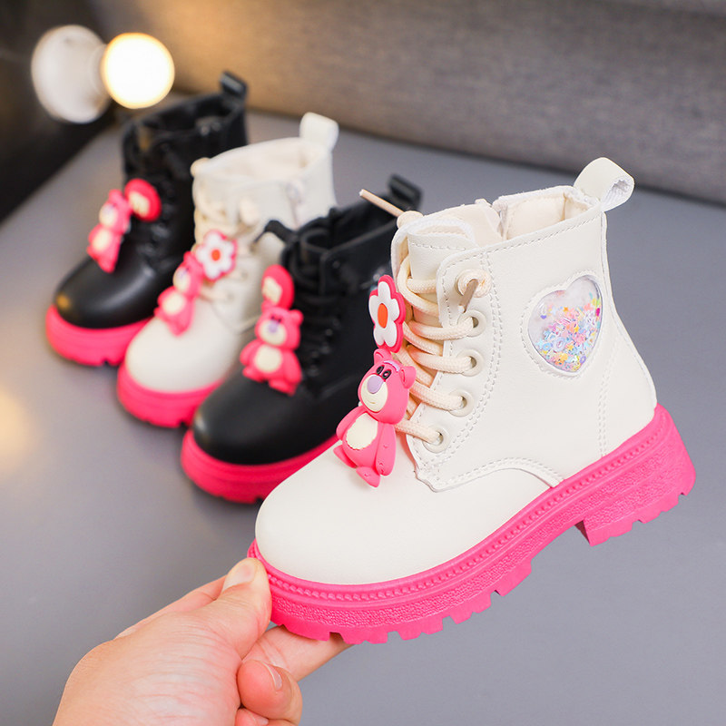 Martens, детские демисезонные милые флисовые короткие сапоги для принцессы, с медвежатами