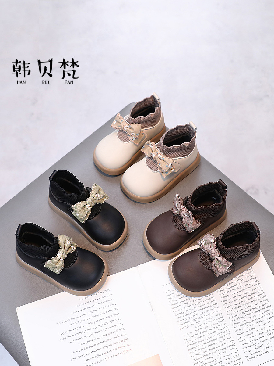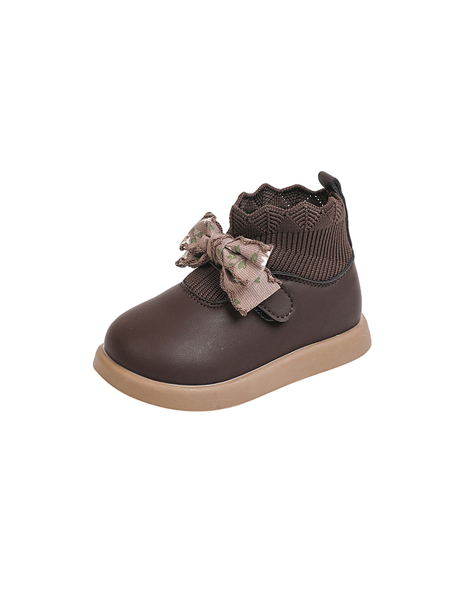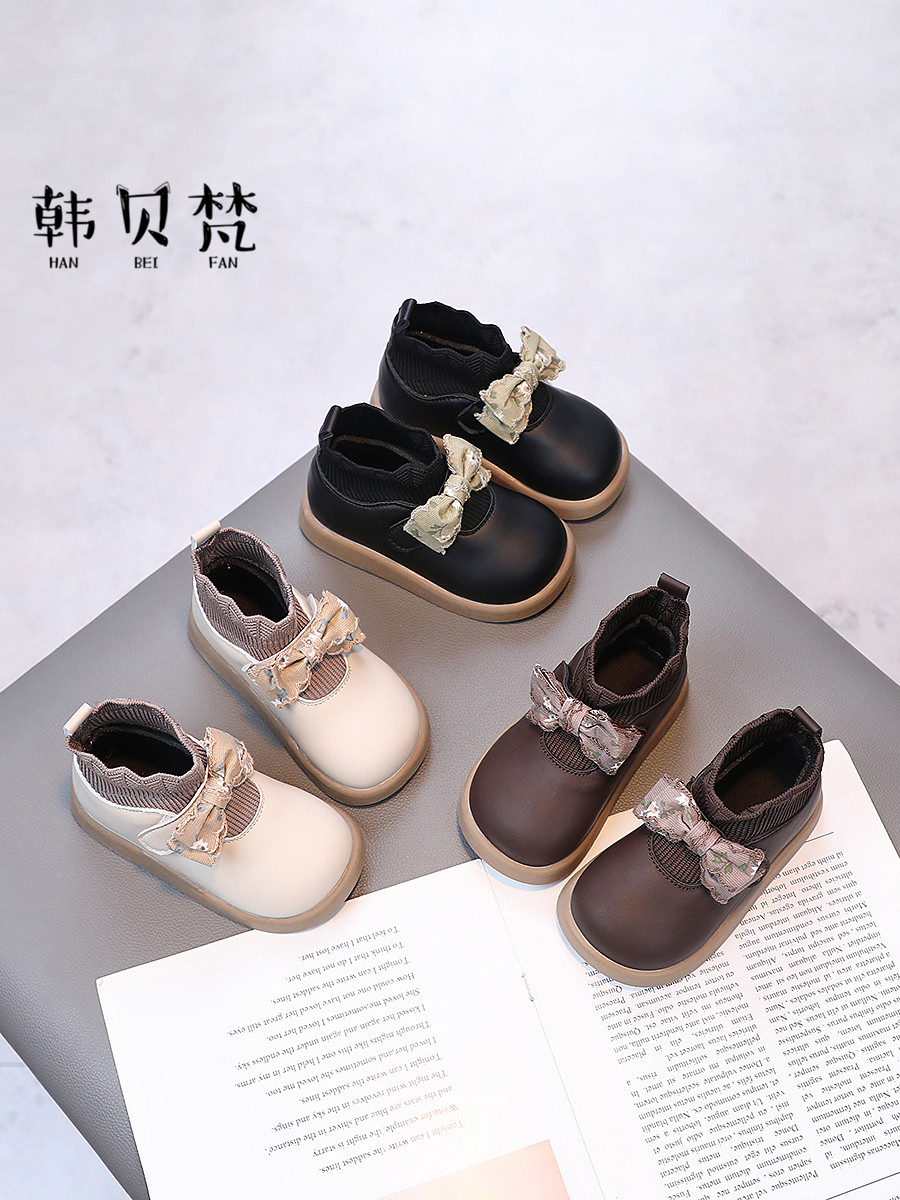 Короткие сапоги с бантиком, демисезонные детские высокие сапоги, мягкая подошва