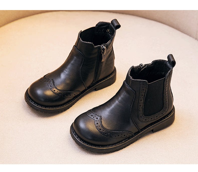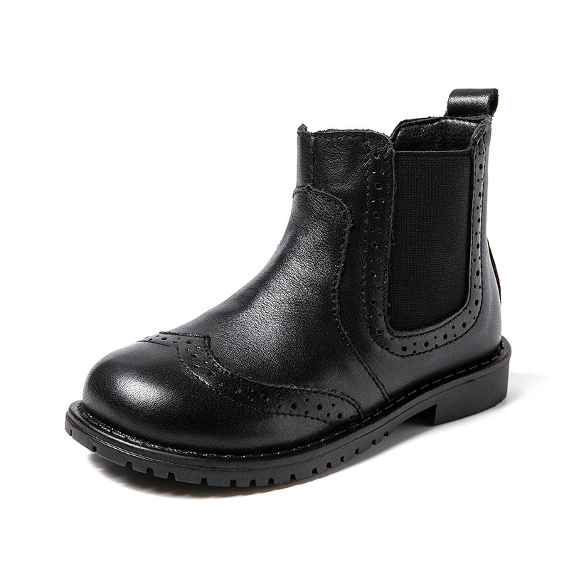 Martens, демисезонные детские короткие сапоги для мальчиков в английском стиле для черной кожи, ботинки, из натуральной кожи, в британском стиле, мягкая подошва