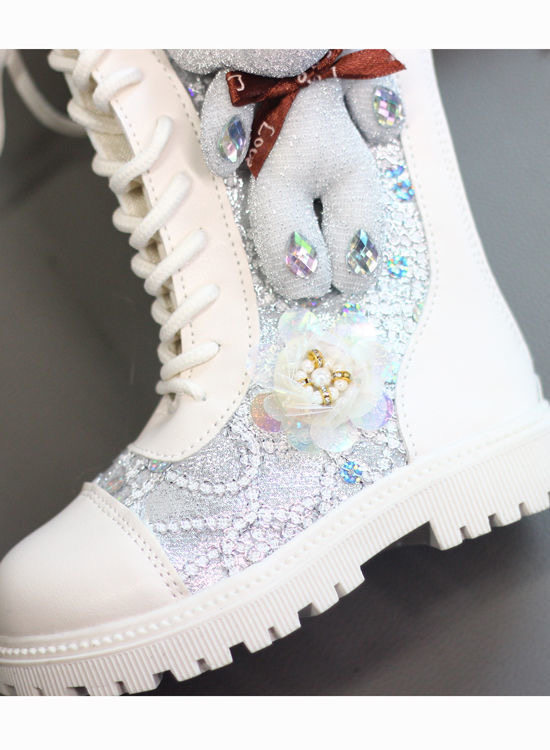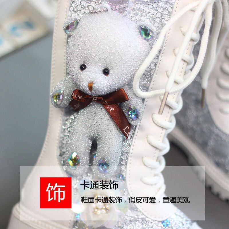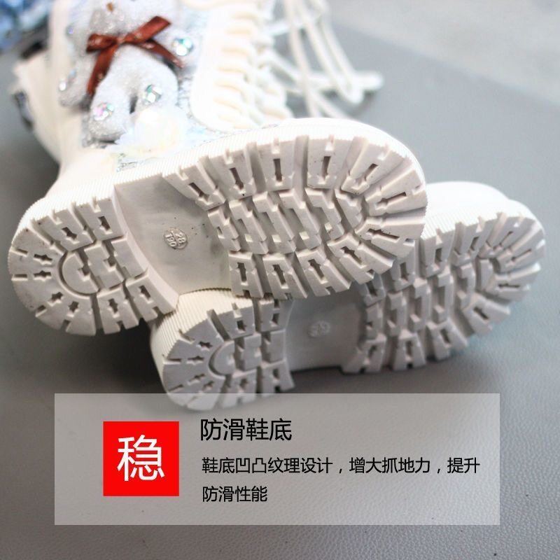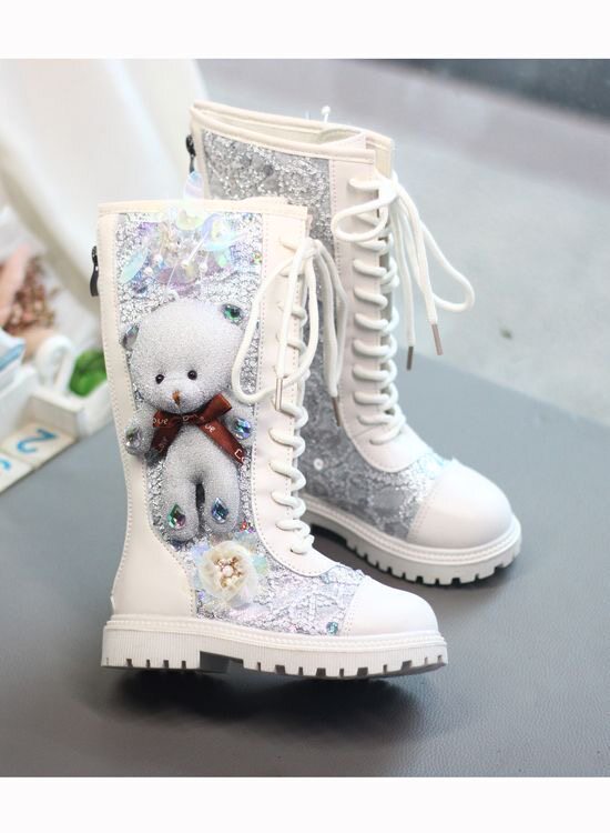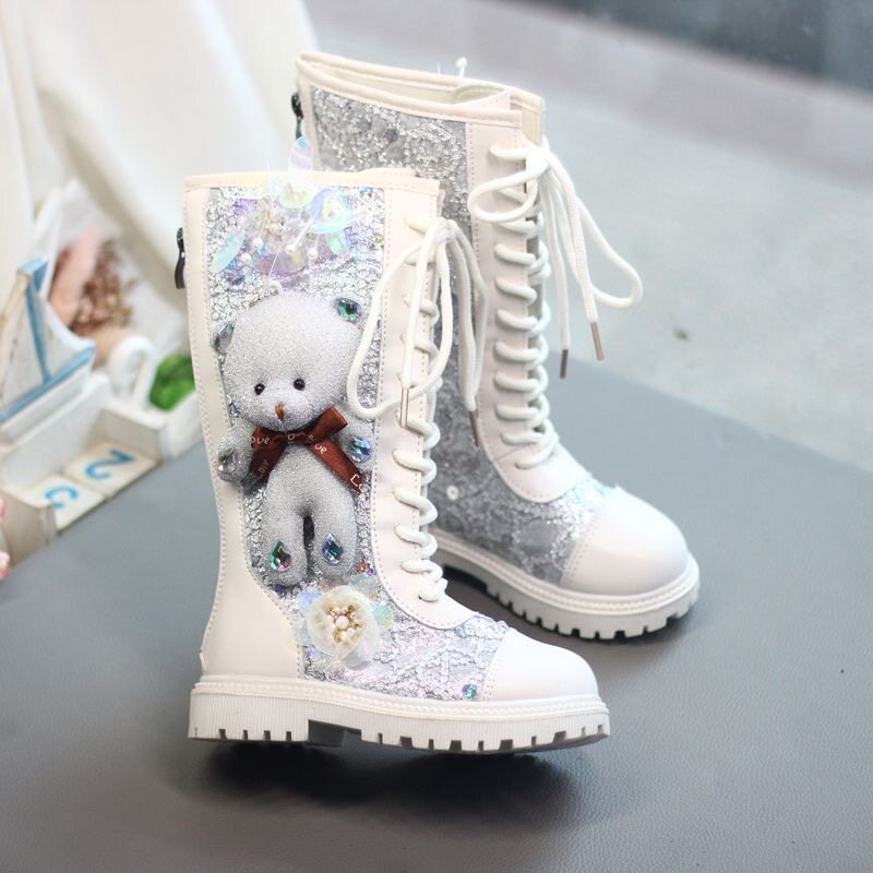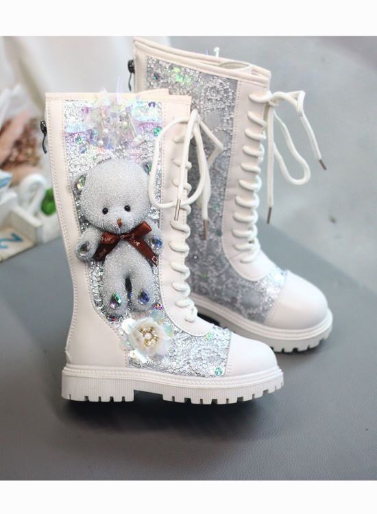 Мультяшные высокие сапоги, флисовый зимний детский наряд маленькой принцессы, блестки для ногтей, ботинки