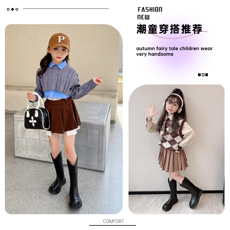 Детская обувь, высокие сапоги, утепленные детские ботинки, осенняя, из натуральной кожи, в западном стиле