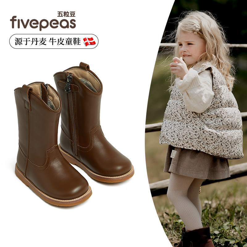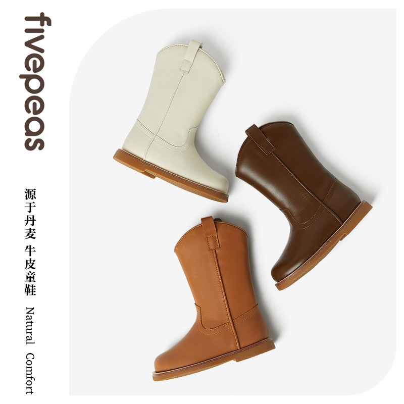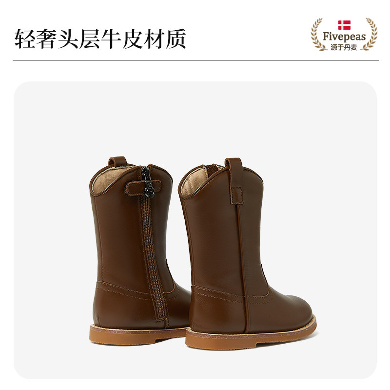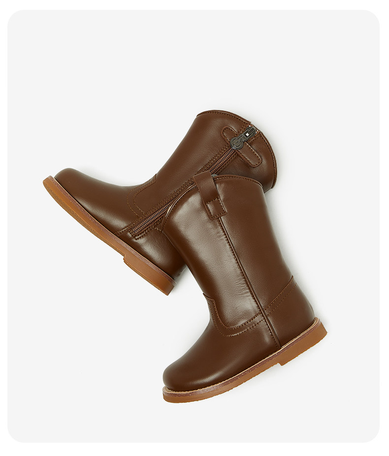 Детские утепленные кожаные высокие сапоги, коллекция 2023, средней длины, мягкая подошва