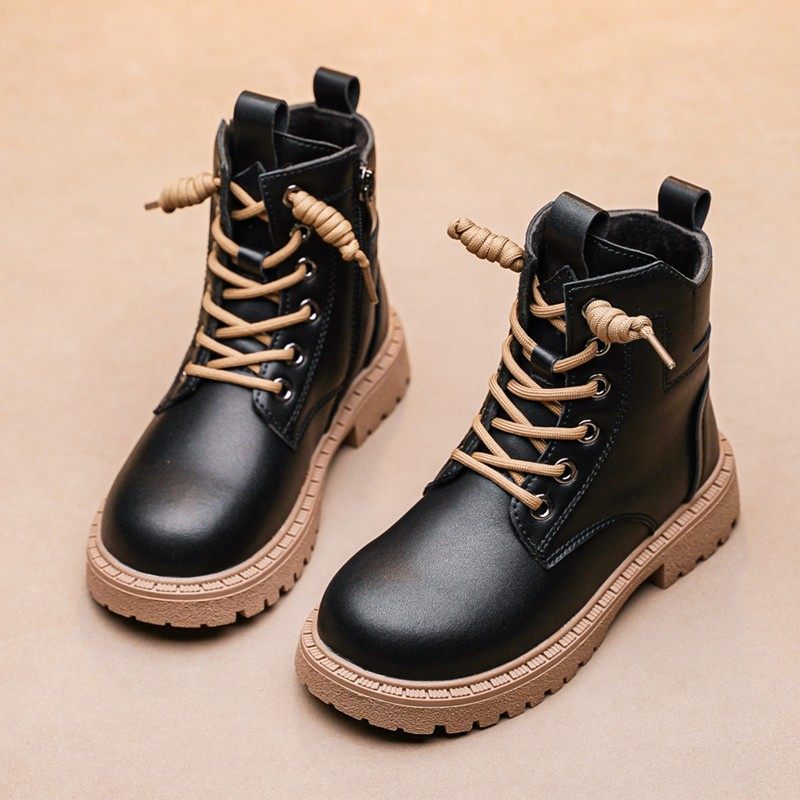 Martens, черные детские демисезонные короткие короткие сапоги для мальчиков, из натуральной кожи, мягкая подошва