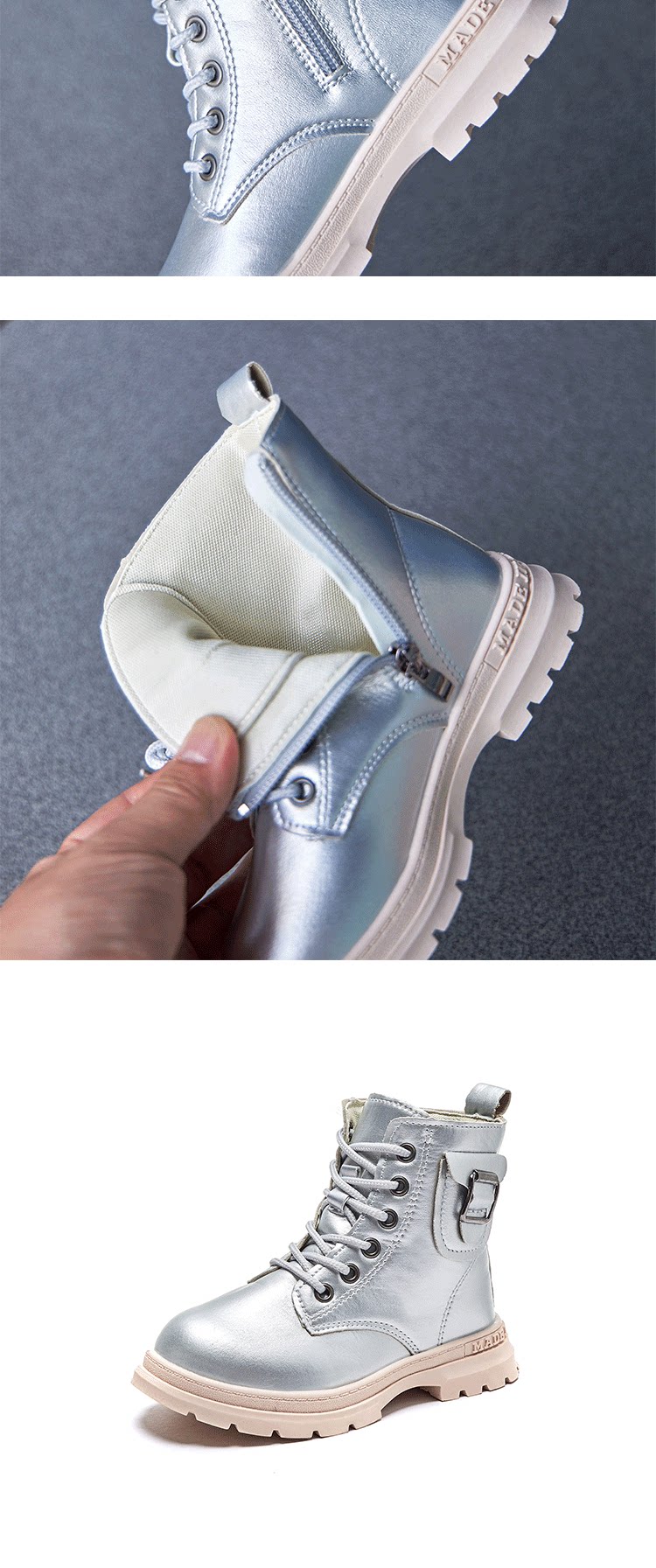 Серебряные зимние нескользящие ботинки, модные детские сапоги для мальчиков, мягкая подошва