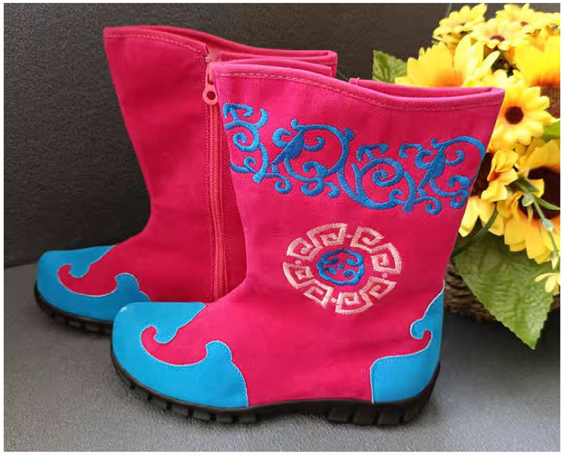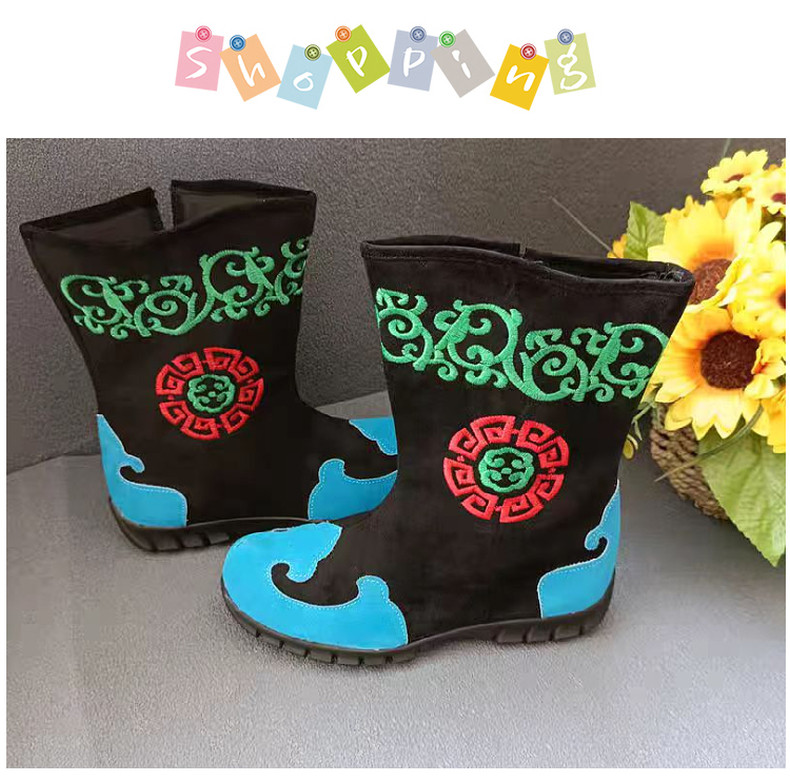 Детские монгольские мужские и женские ботинки, танцевальная обувь с характерной монгольской вышивкой, рабочие ботинки, повседневные тканевые ботинки