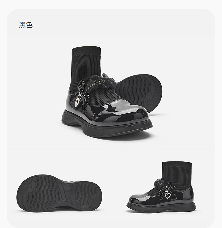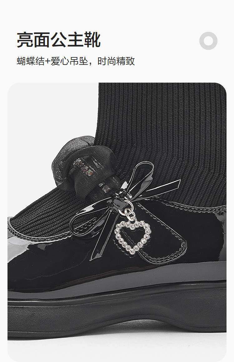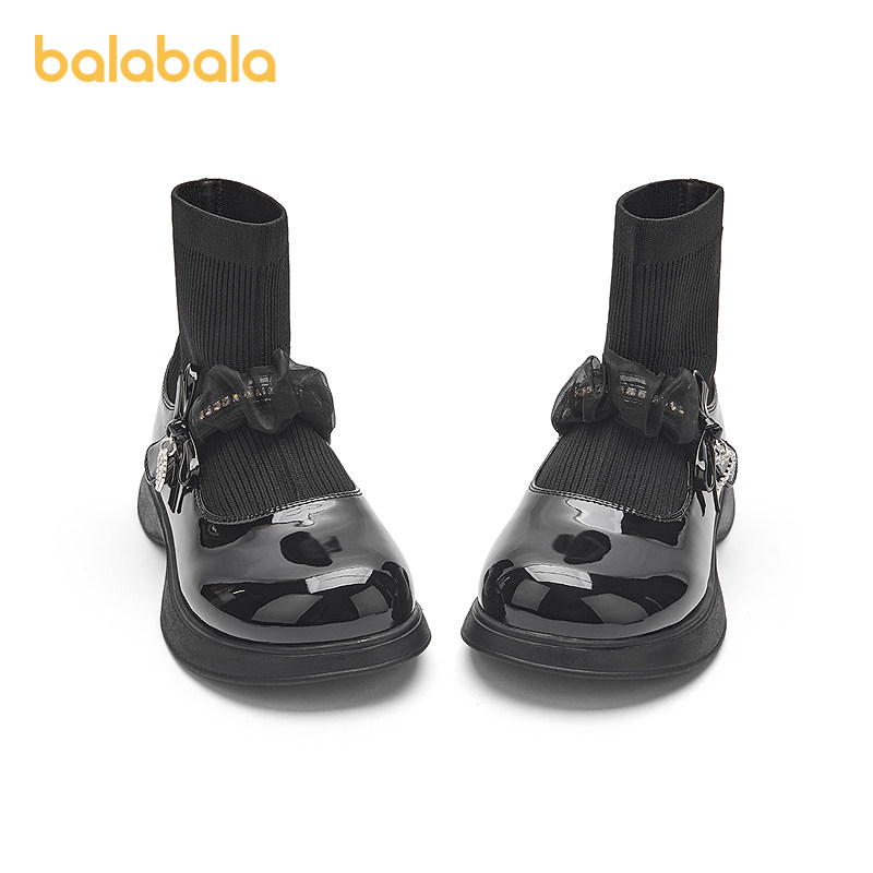 [Тот же стиль в торговых центрах] Balabala Girls Princess Boots Глянцевые кожаные сапоги для лица Черные универсальные новые осенние ботинки 2025 года с носками