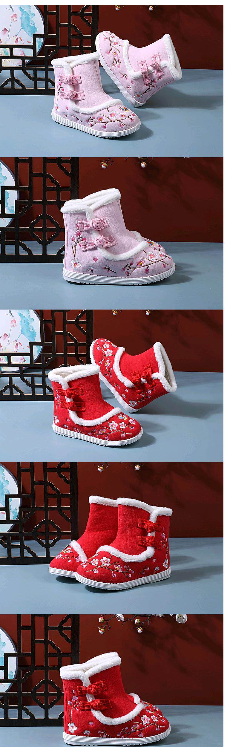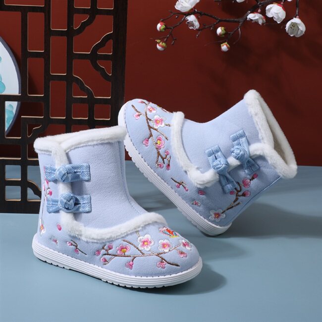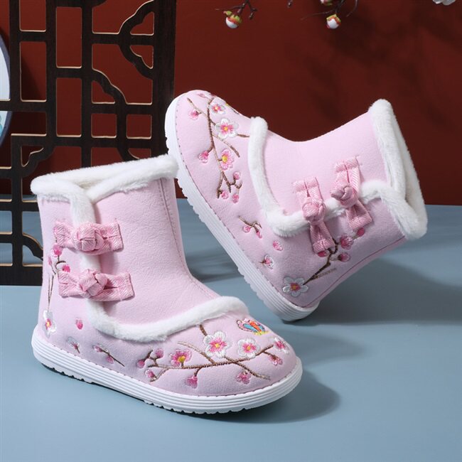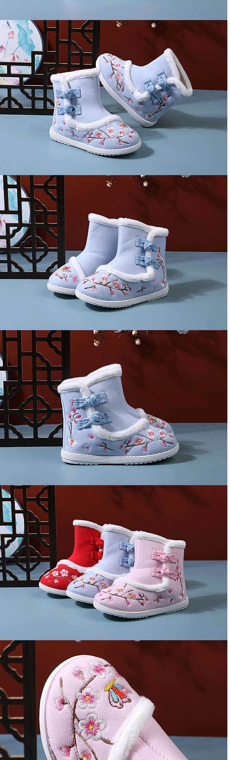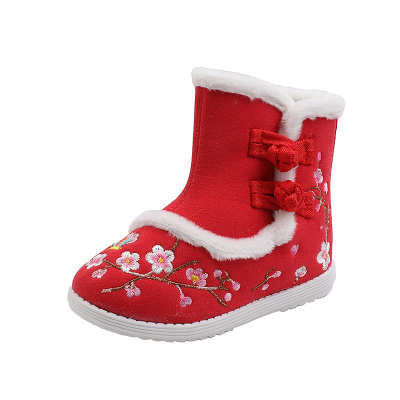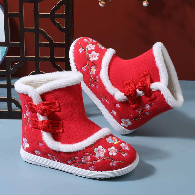 Зимнее флисовое детское ханьфу, детские ботинки для девочек, зимние сапоги