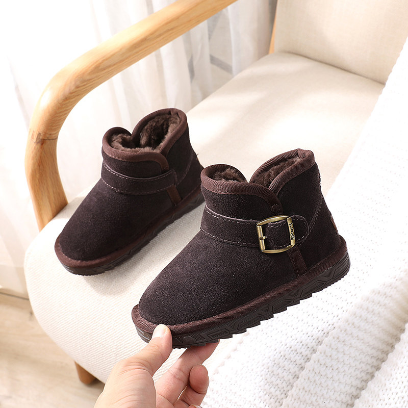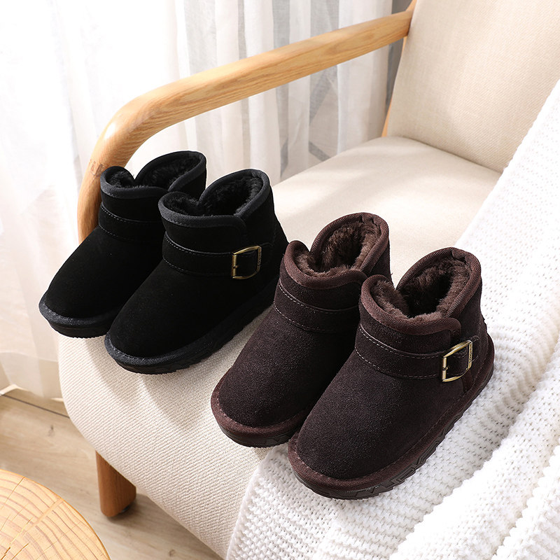 Детские удерживающие тепло зимние короткие сапоги для мальчиков, утепленные ботинки, из натуральной кожи