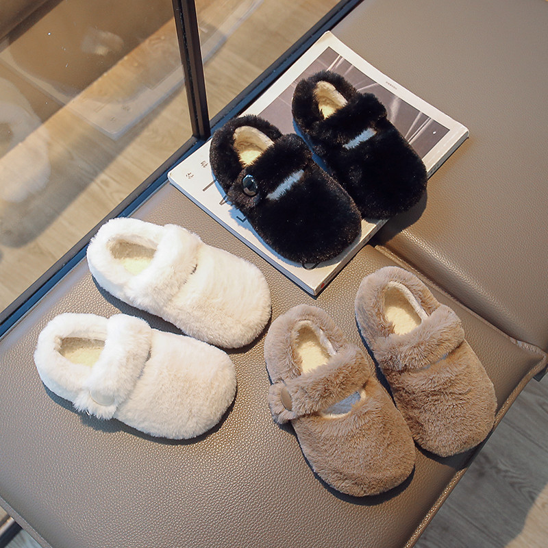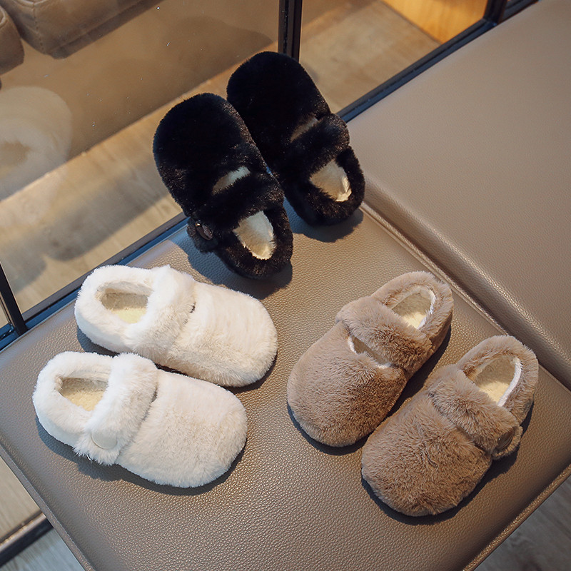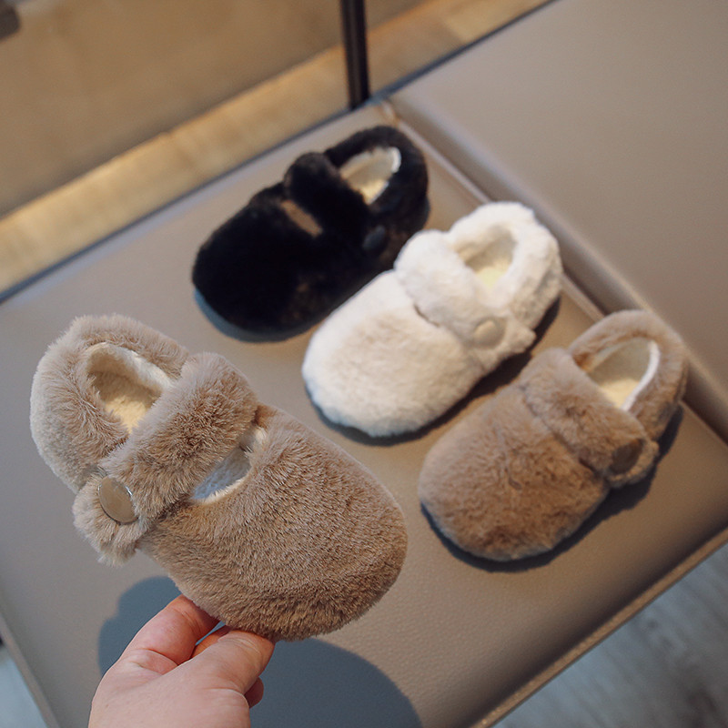 Меховая обувь для девочек, новинка 2024 года, зимняя бархатная теплая хлопковая обувь для верхней одежды, детская обувь с мягкой подошвой из овечьей шерсти для девочек