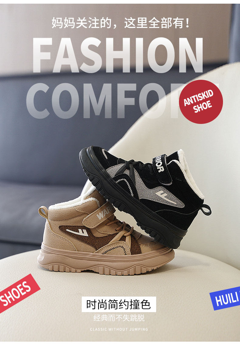 Детская обувь Huili, мужская осень 2023 года, новый стиль, средние и большие детские туфли плюс бархатные теплые хлопковые туфли, детская повседневная спортивная обувь с высоким берцем