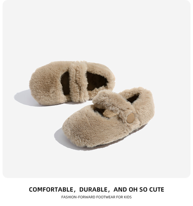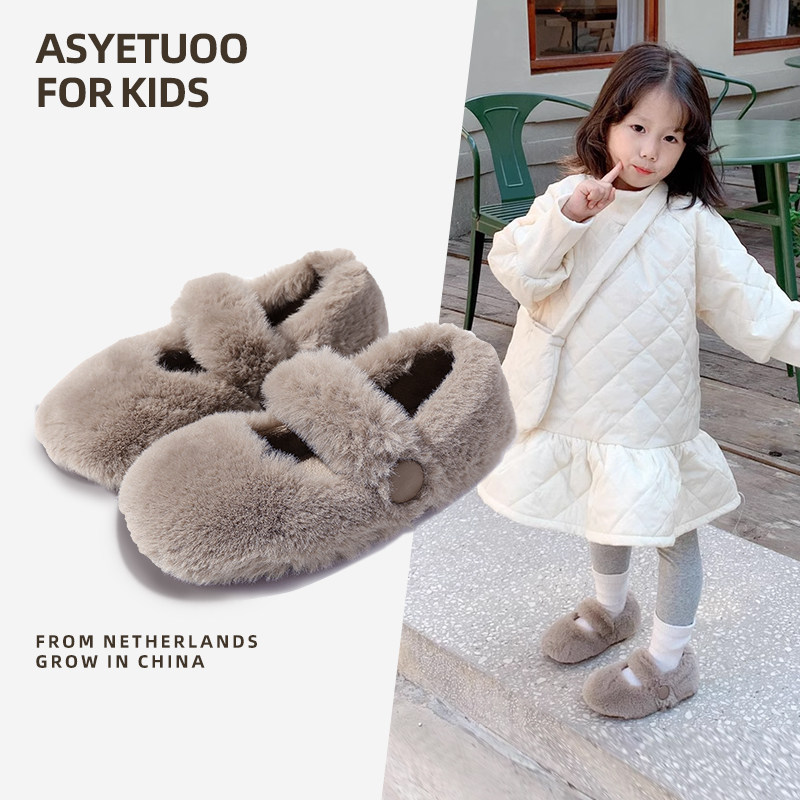 Девичья шерстяные туфли детские туфли бобовых бобов зимой плюс бархатные туфли маленькая девочка две хлопковые туфли 2024 новые девочки обувь